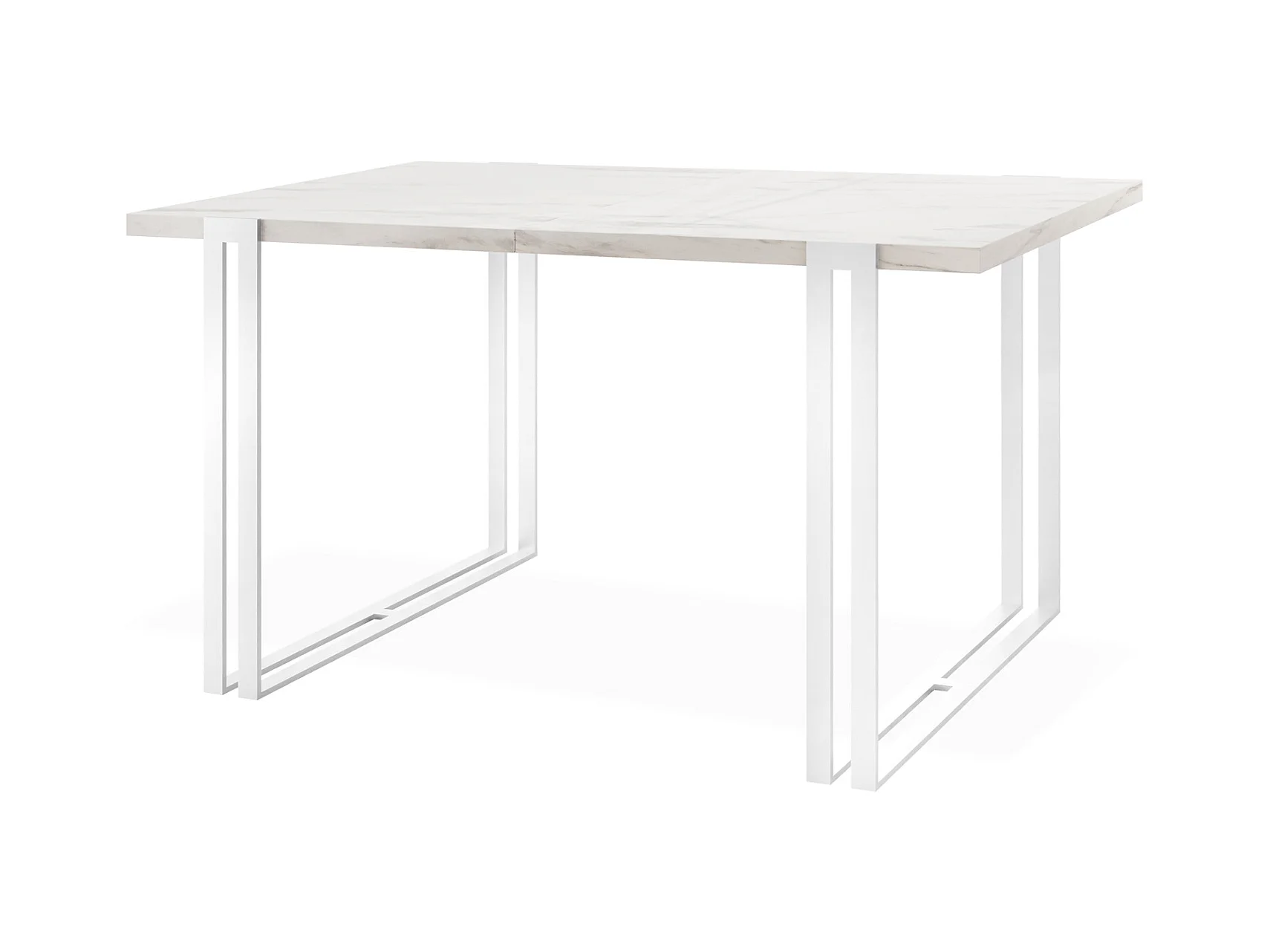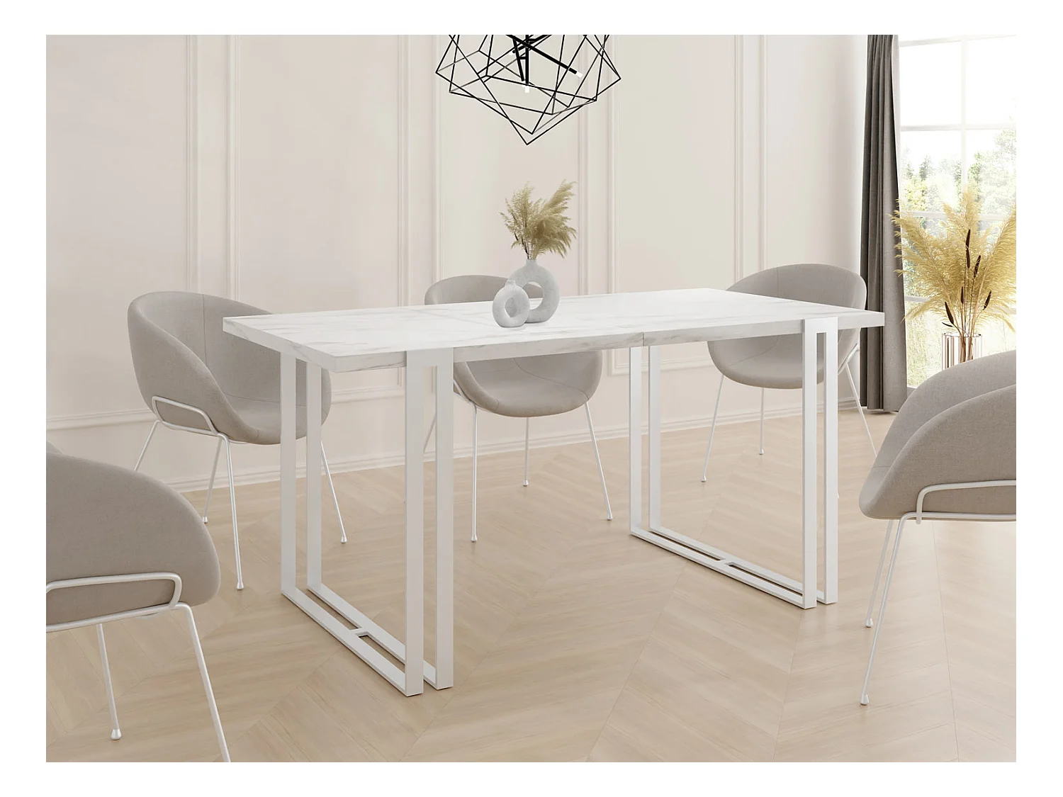 Table à Manger Extensible - Table Style Loft en Métal - Table Style Industriel Pour le Salon - Gain de Place - 120 / 220 cm - Marble Blanc - 120 x 80 cm