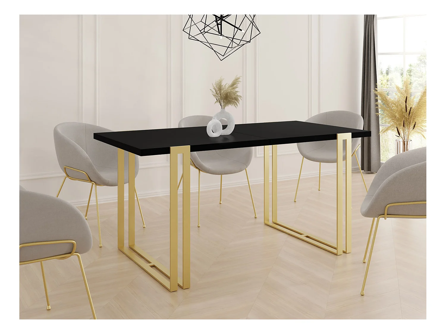 Table à Manger Extensible - Table Style Loft en Métal - Table Style Industriel Pour le Salon - Gain de Place - 120 / 220 cm - Noir/Doré - 120 x 80 cm