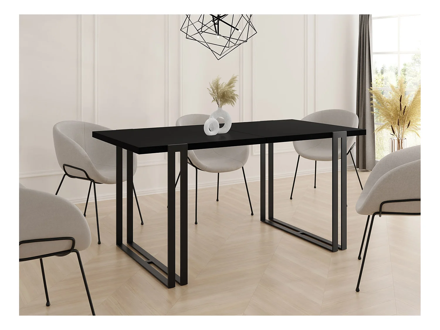 Table à Manger Extensible - Table Style Loft en Métal - Table Style Industriel Pour le Salon - Gain de Place - 120 / 220 cm - Noir - 120 x 80 cm