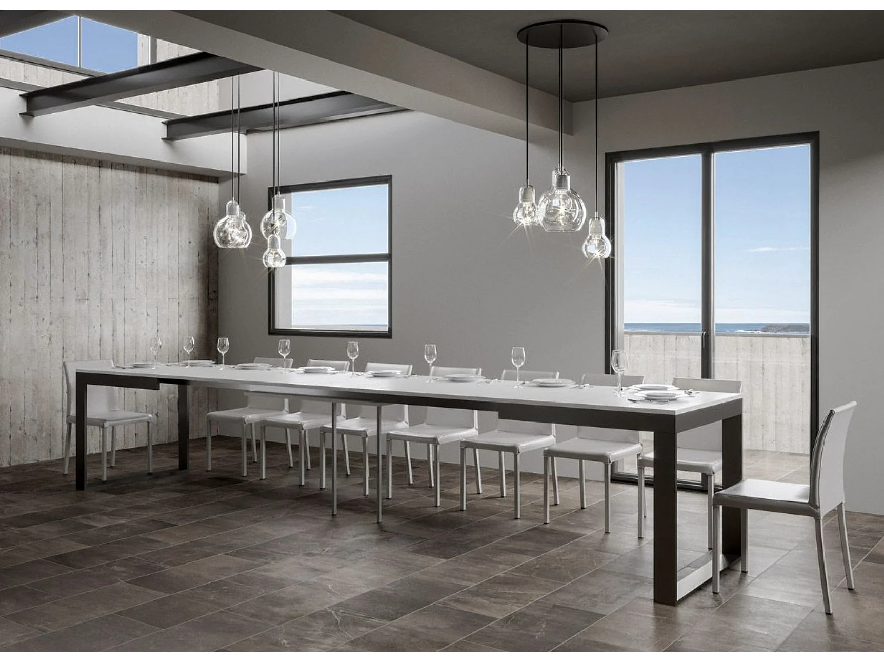 Table à manger extensible Tiroz evolution-Blanc-Sur roulettes-160 à 420 cm