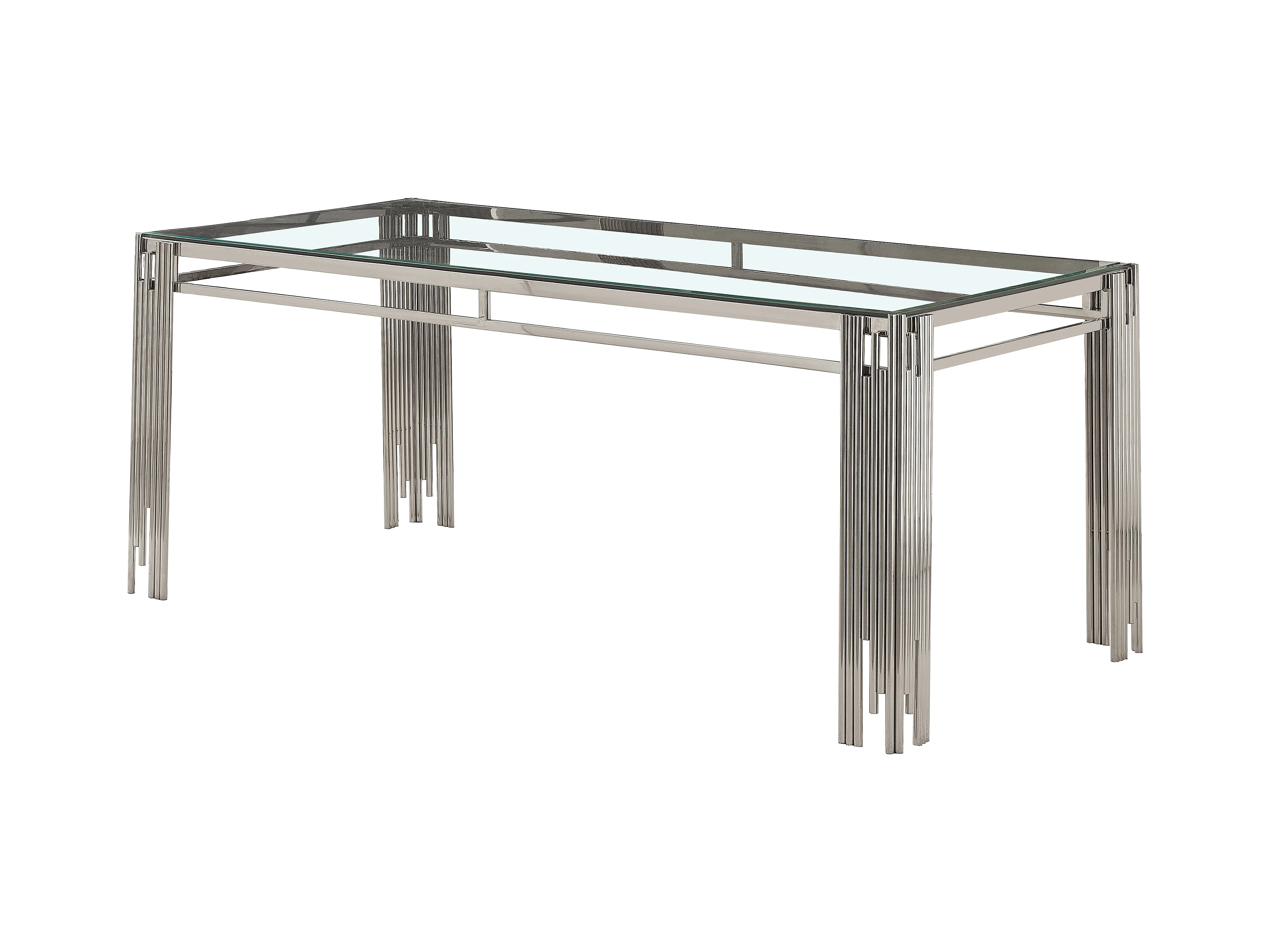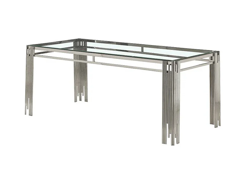 Table à manger FLUTE Chrome Plateau en verre Marbré 150 cm