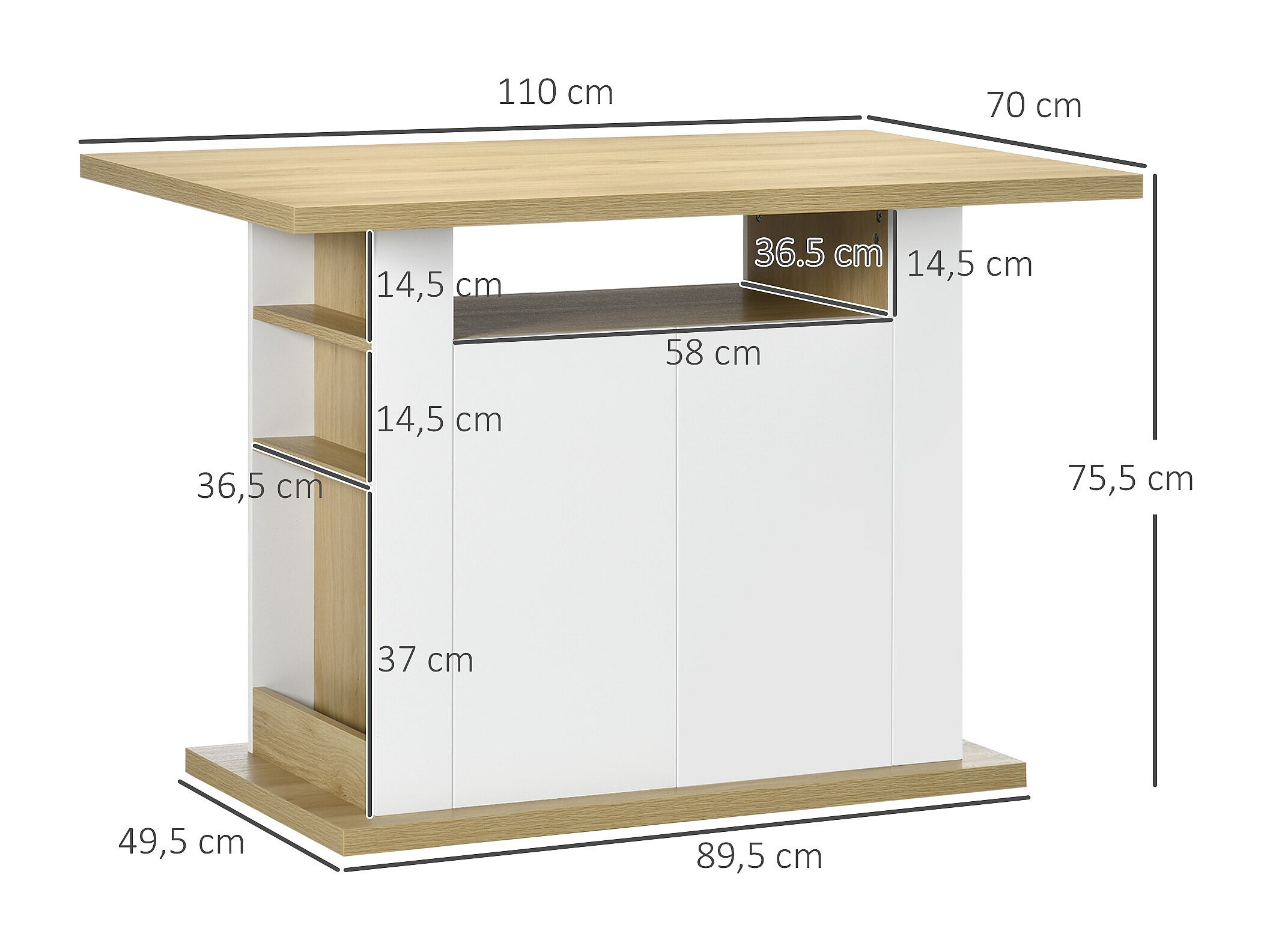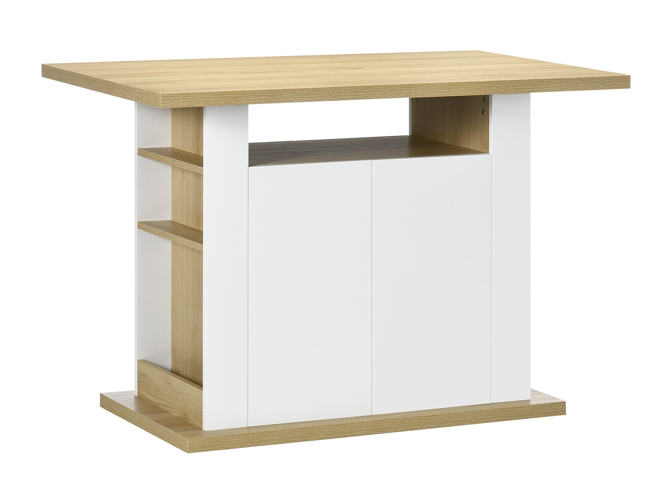 Table à manger ilot central cuisine 4-6 personnes blanc naturel