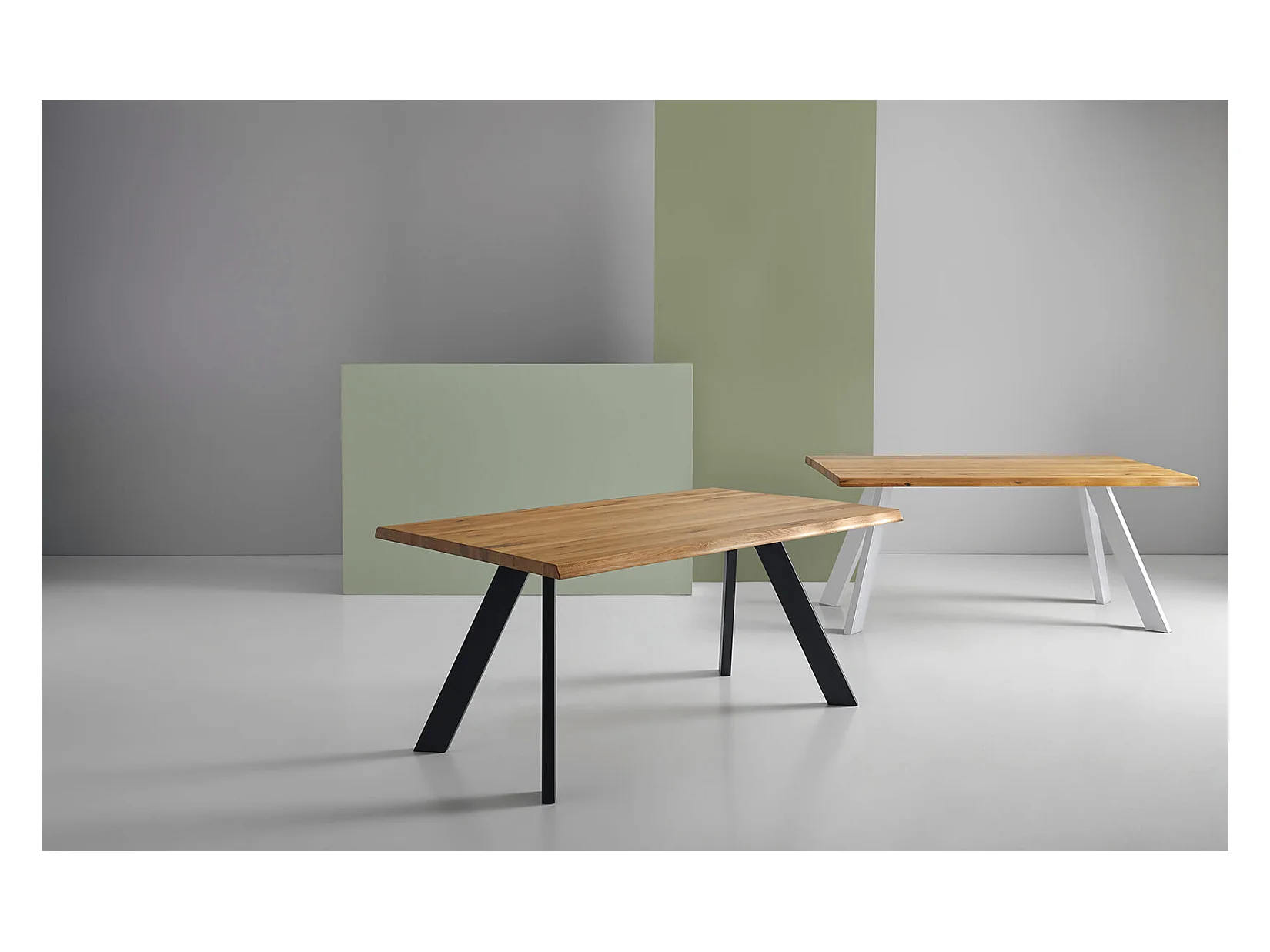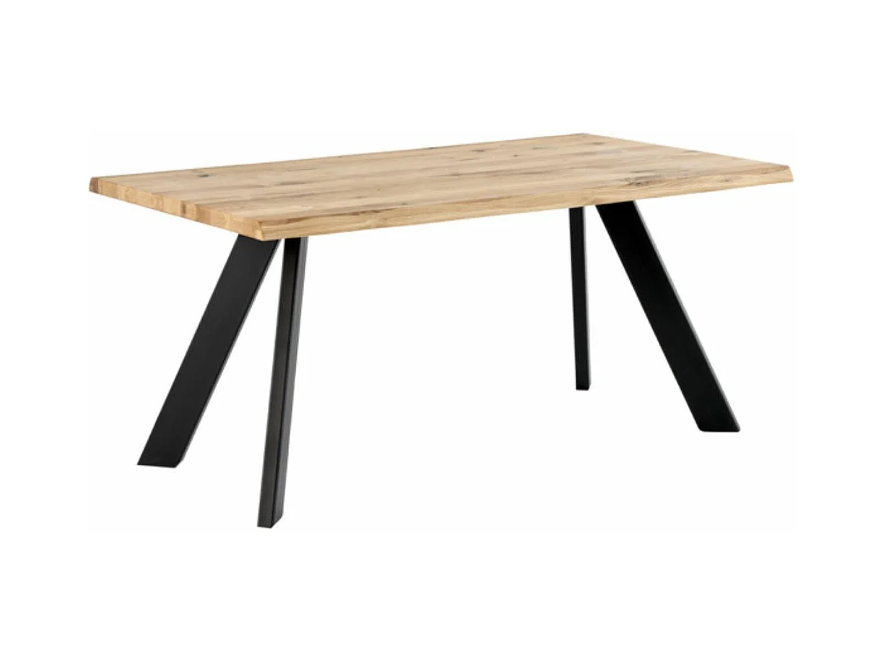 Table à manger industrielle Brokate – Chêne massif clair et pieds métal-Couleur Naturel/Noir-Largeur 140 cm