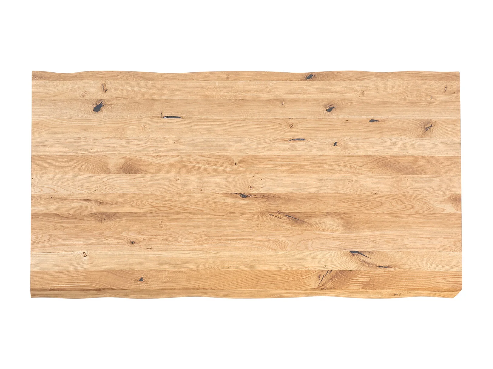 Table à manger industrielle Brokate – Chêne massif clair et pieds métal-Couleur Naturel/Noir-Largeur 160 cm