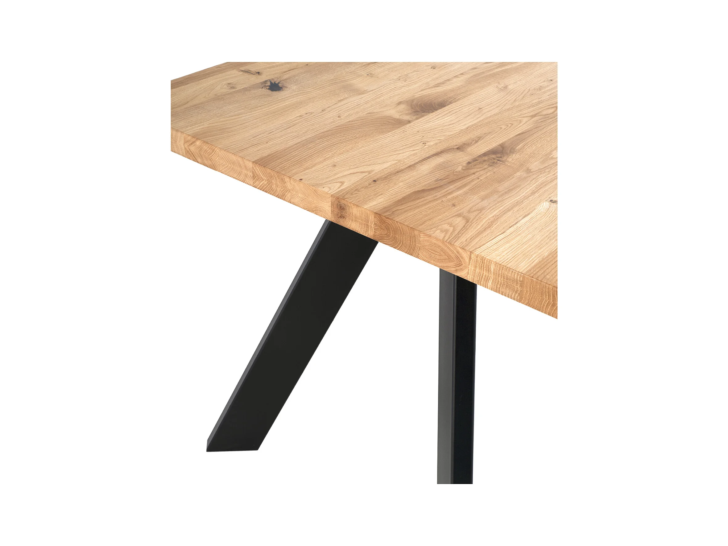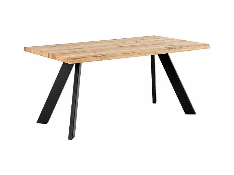 Table à manger industrielle Brokate – Chêne massif clair et pieds métal-Couleur Naturel/Noir-Largeur 200 cm