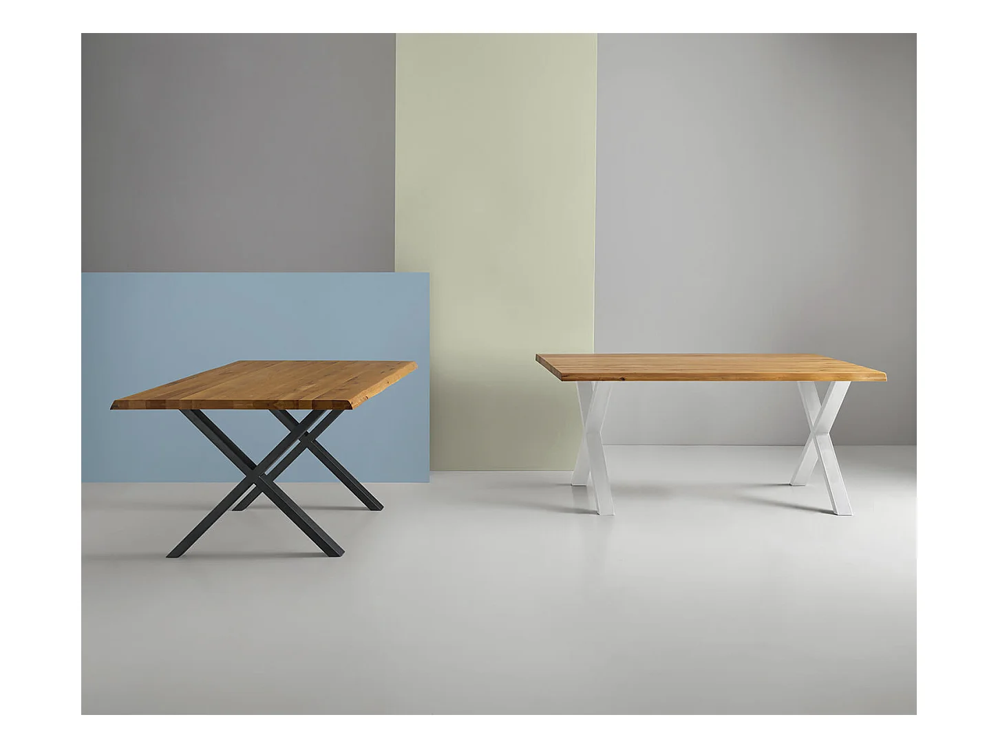Table à manger industriel chêne massif clair et pieds X métal noir Antika-Largeur 140 cm