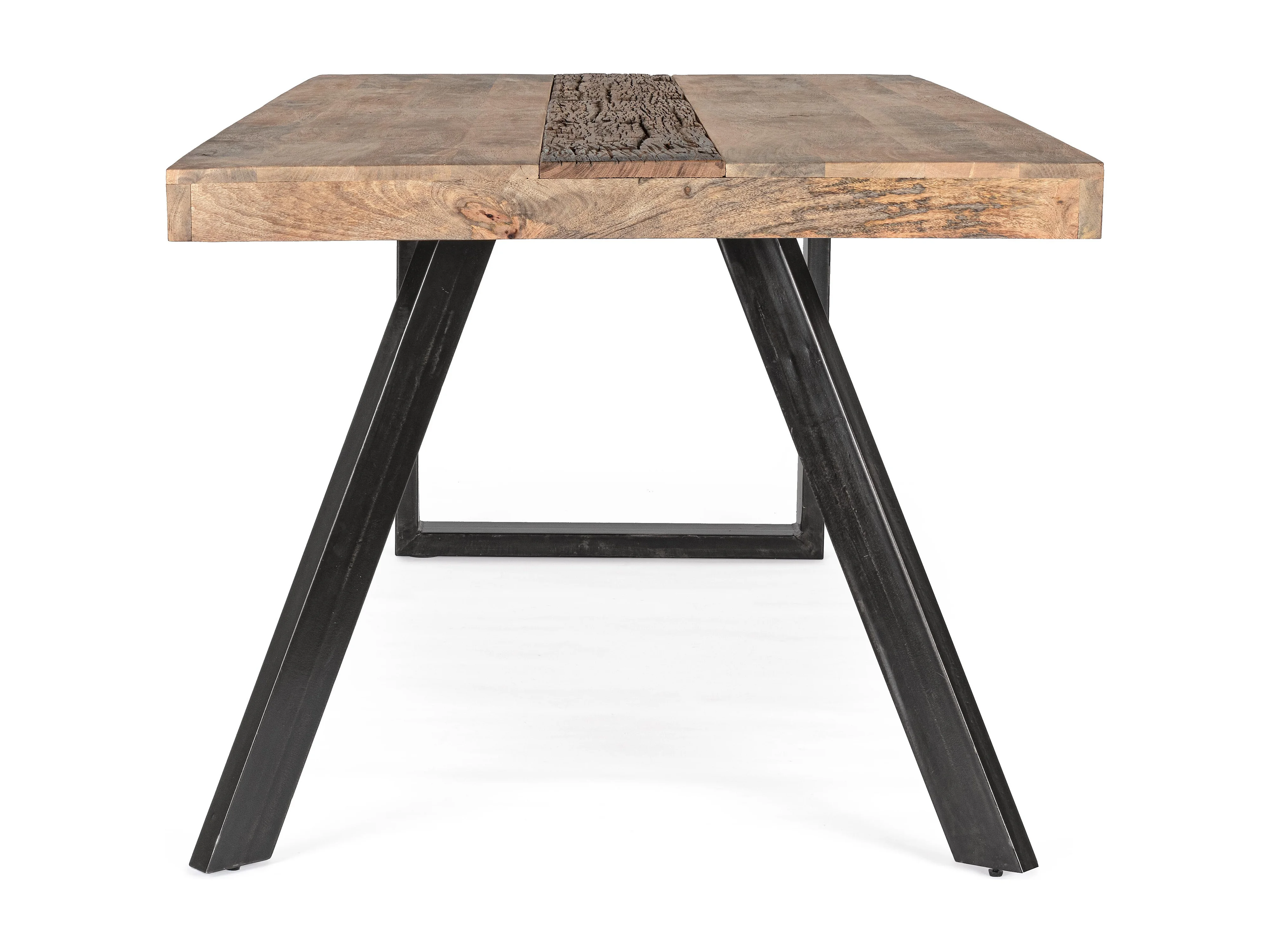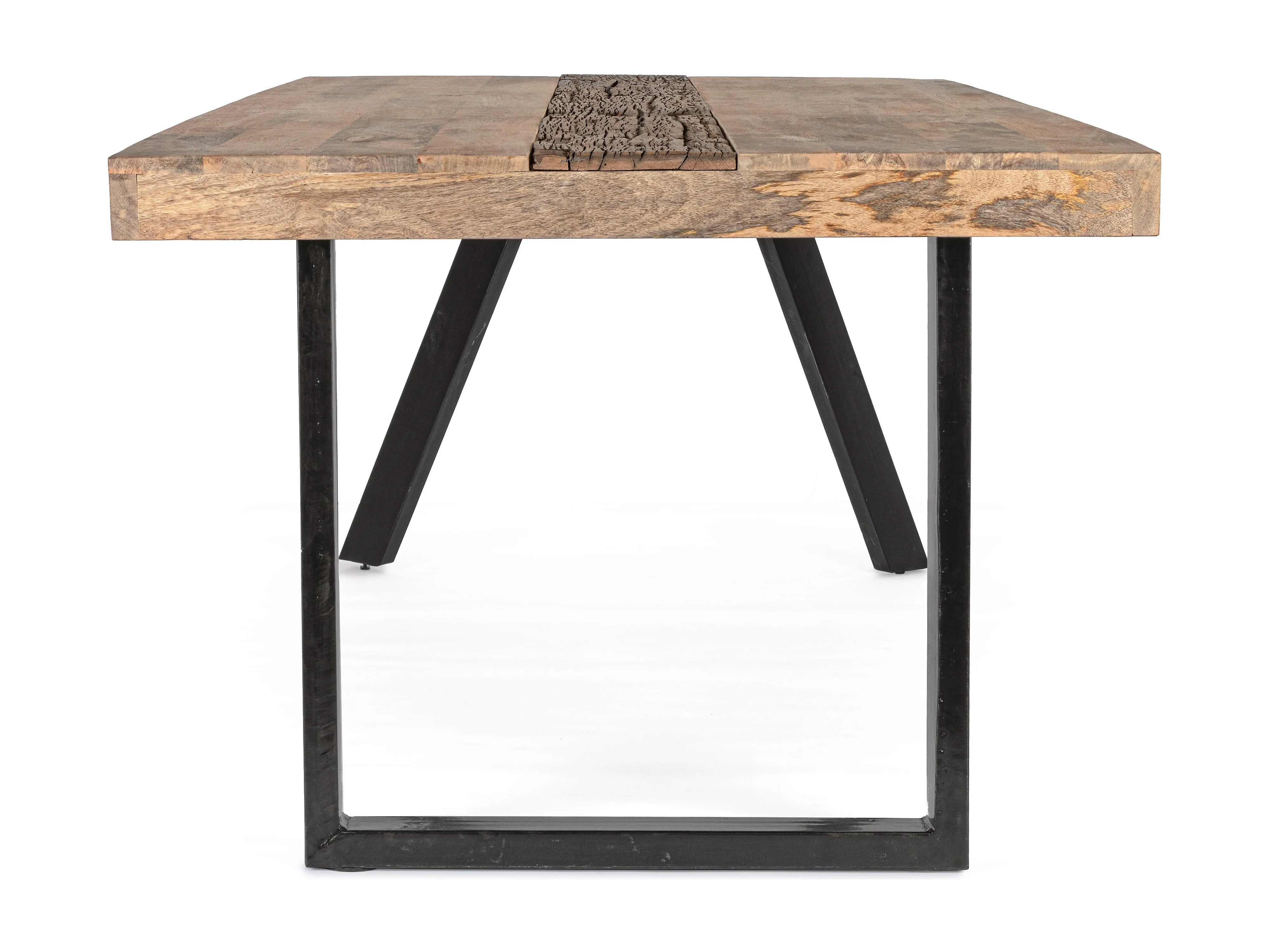 Table à manger industrielle 10 places bois de manguier recyclé et pieds acier noir Kramer 200cm