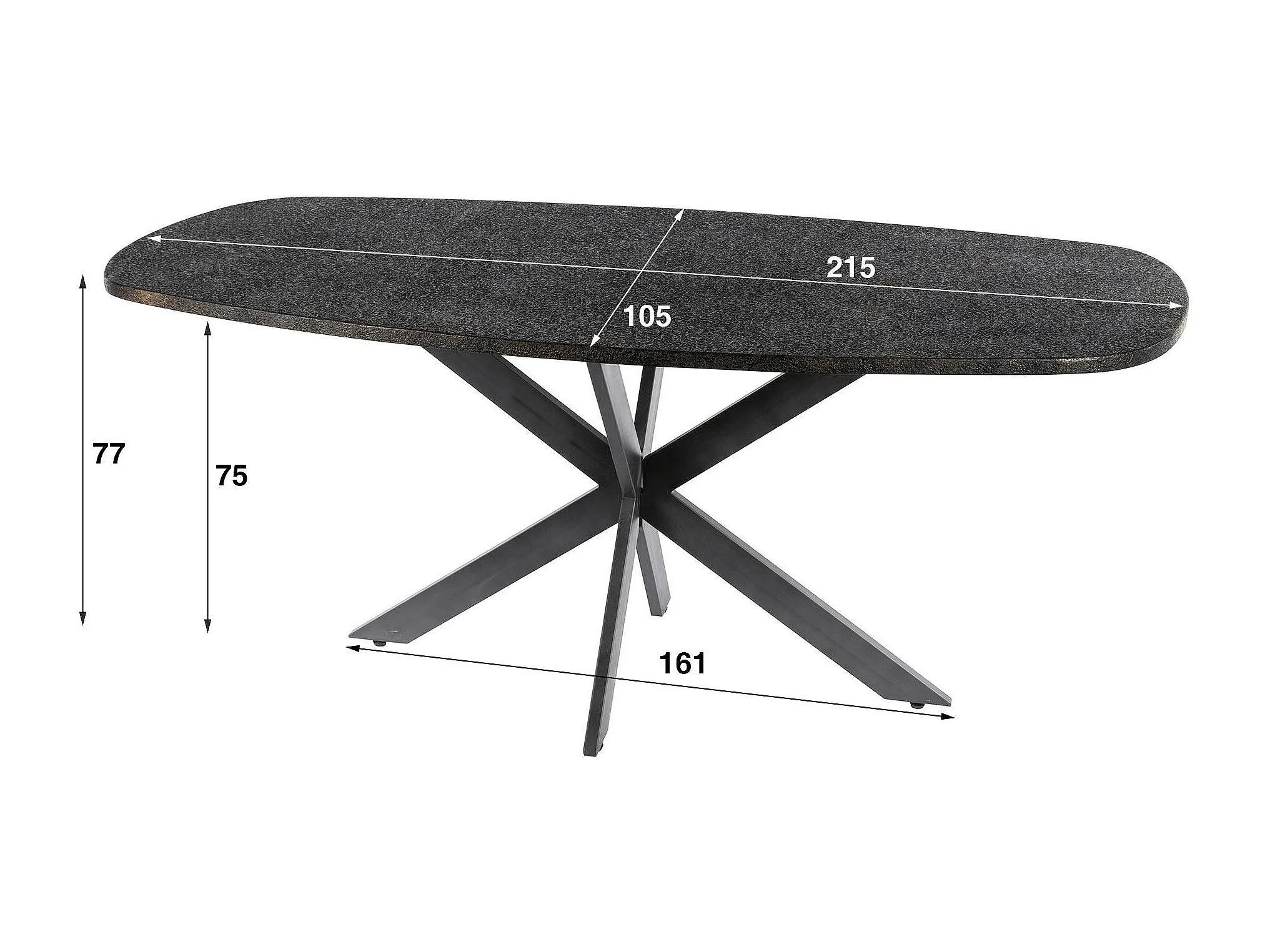 Table à manger industrielle gris foncé texturée 215 cm RALF