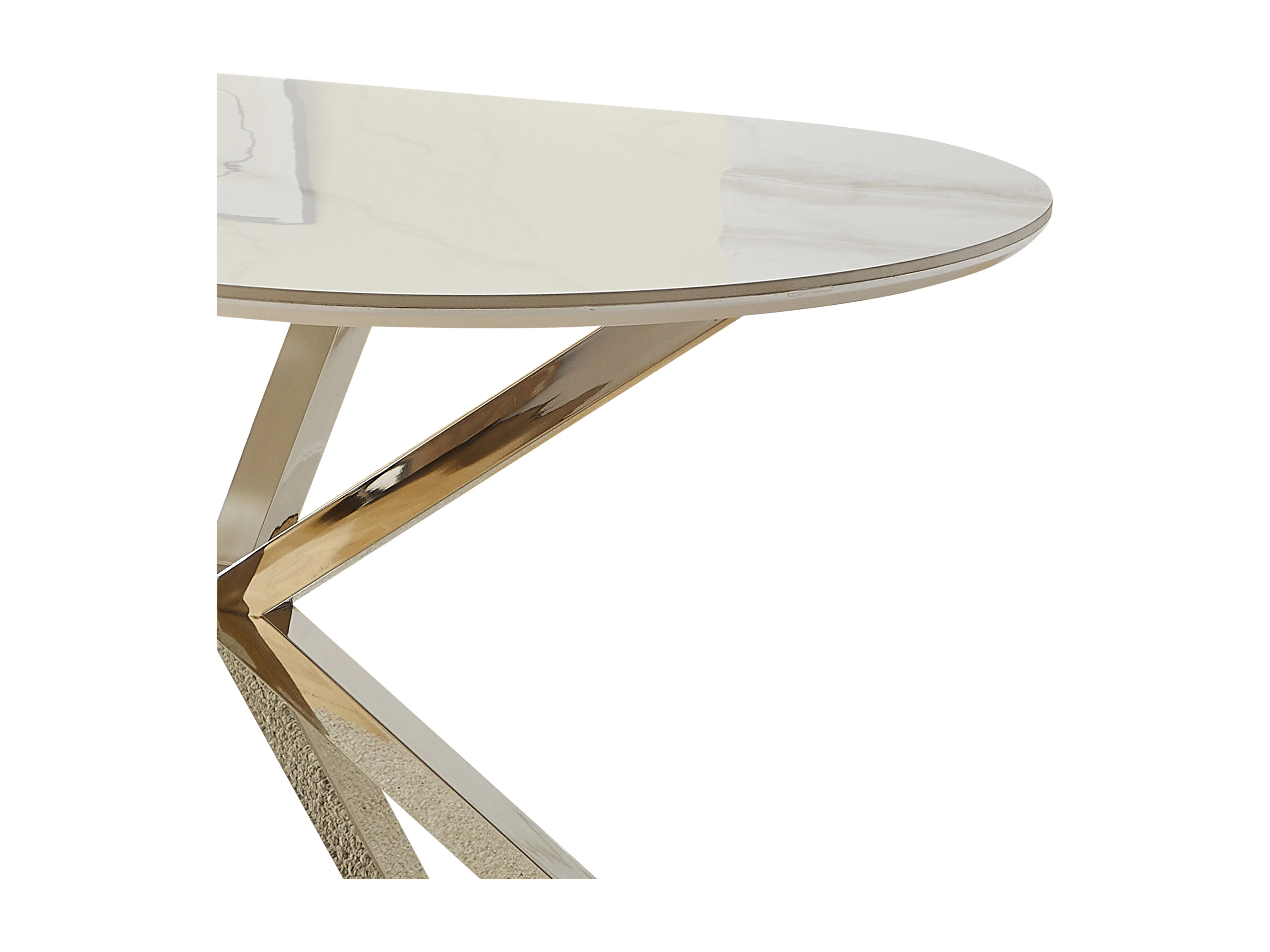 Table à manger LUCIA - 6 personnes - Plateau en céramique effet marbre blanc - Pieds en métal chromé