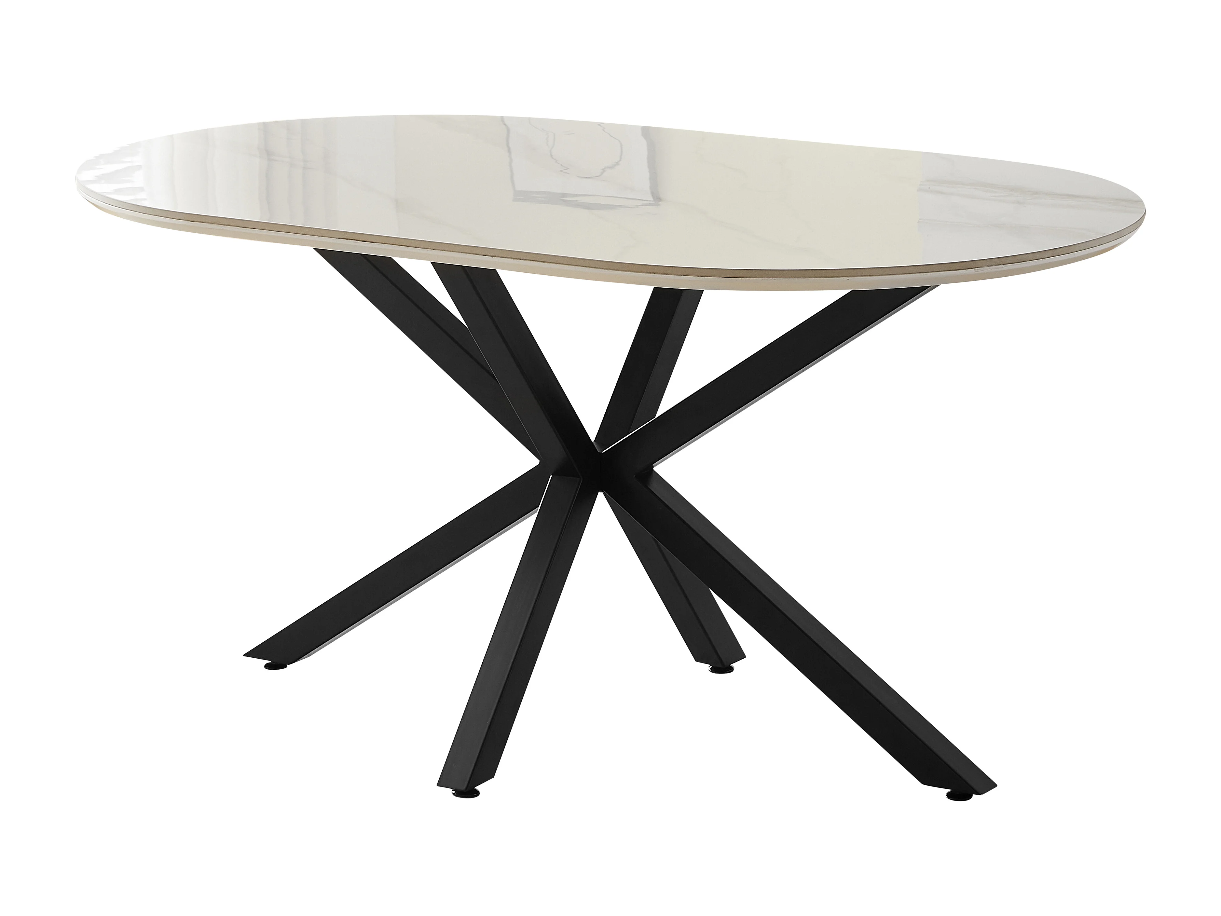 Table à manger LUCIA - 6 personnes - Plateau en céramique effet marbre blanc - Pieds en métal noir