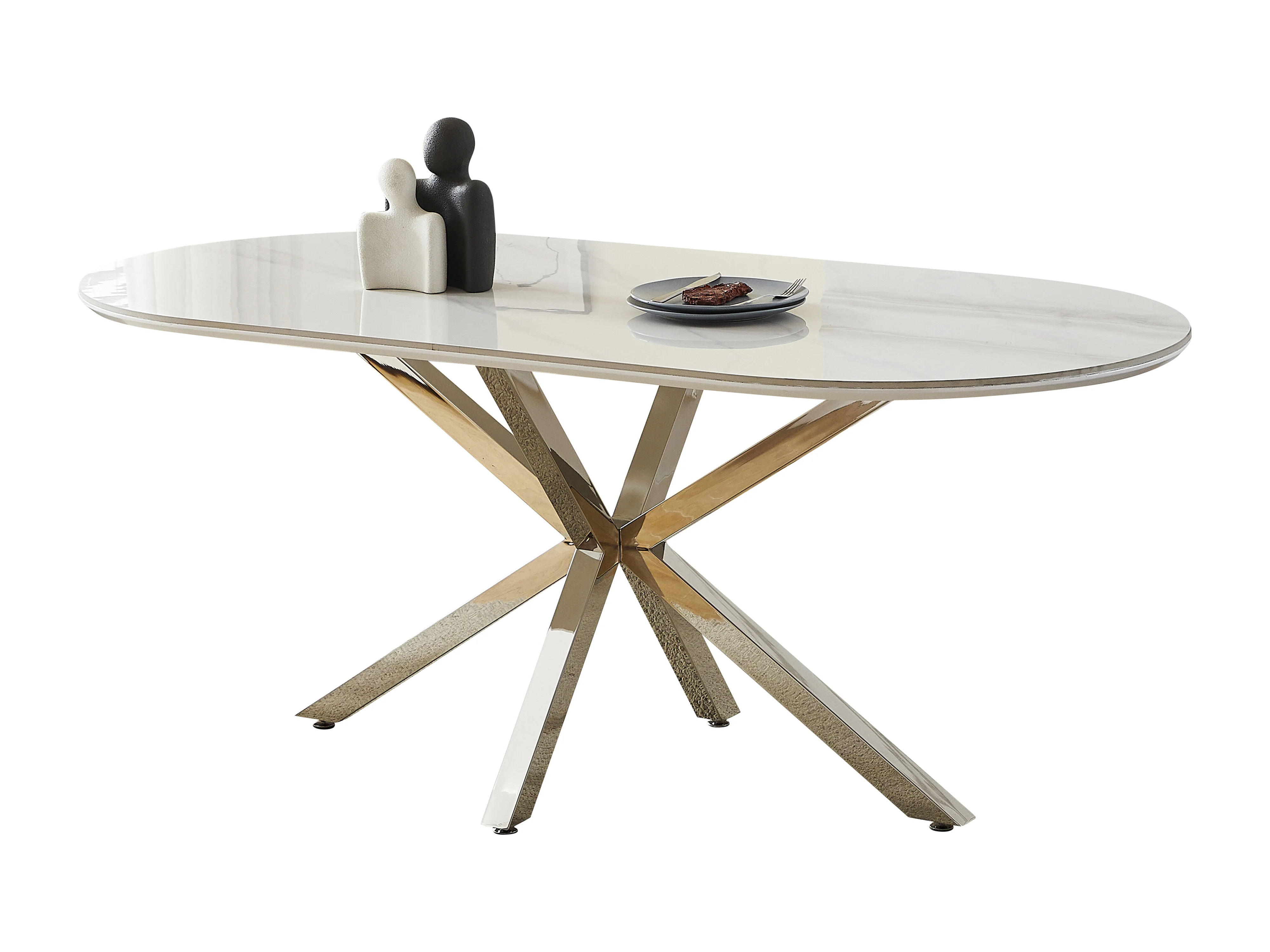 Table à manger LUCIA - 8 personnes - Plateau en céramique effet marbre blanc - Pieds en métal chromé