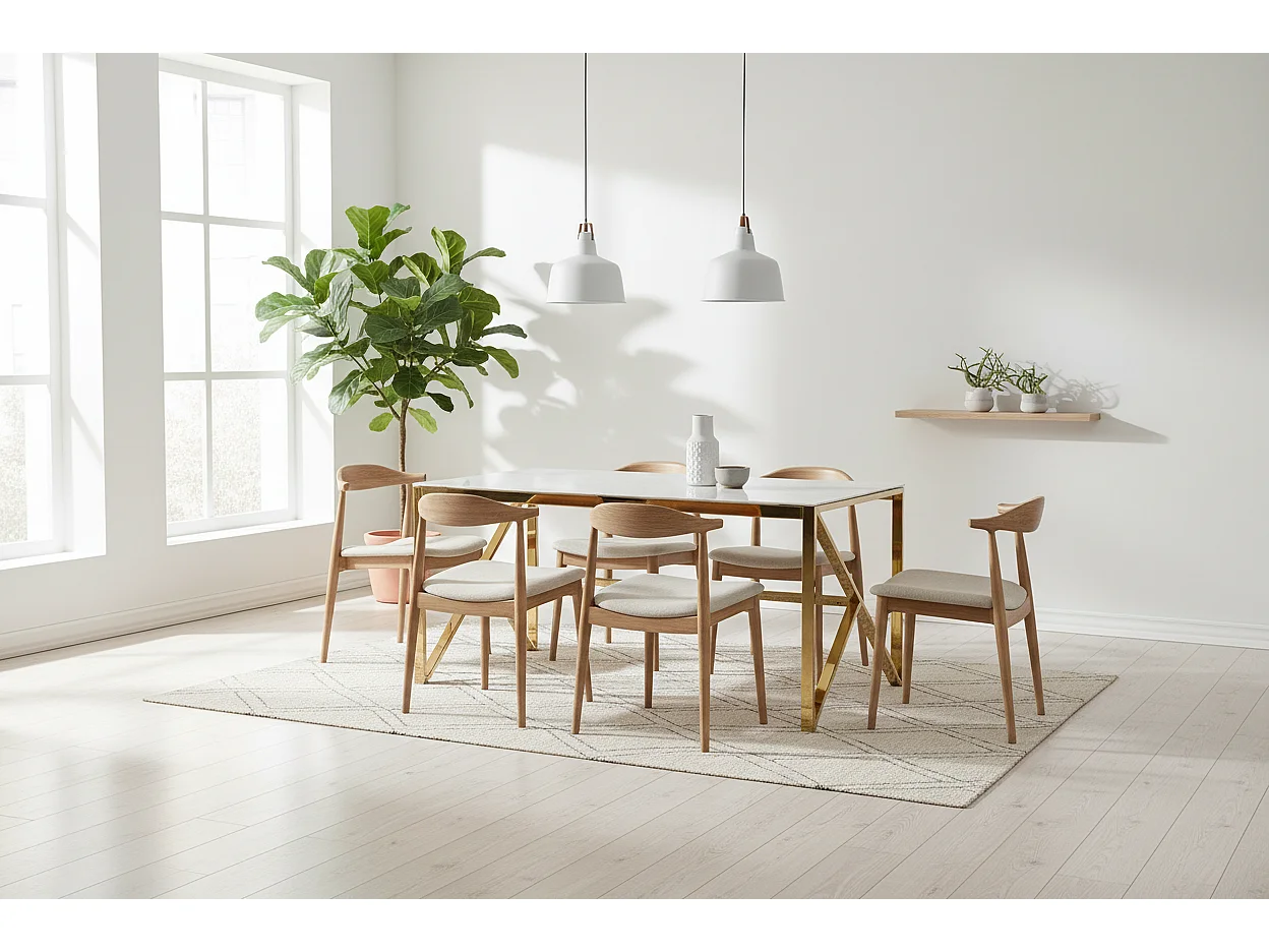 Table à Manger Design Verre Trempé Marbré Blanc & Doré – 150×90 cm
