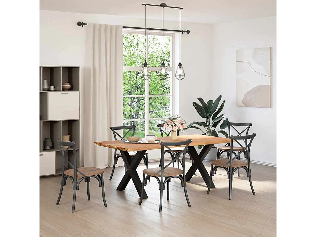 Table à manger marron clair bois de chêne massif rectangulaire