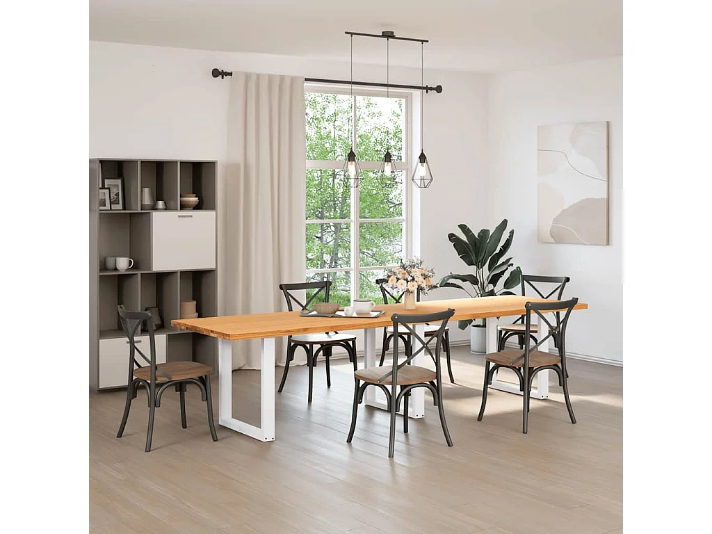 Table à manger marron clair bois de chêne massif rectangulaire