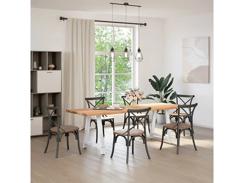Table à manger marron clair bois de chêne massif rectangulaire