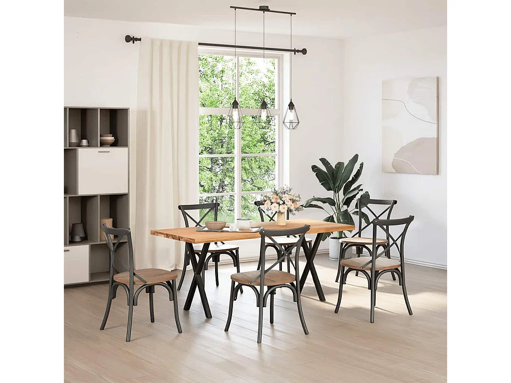 Table à manger marron clair bois de chêne massif rectangulaire