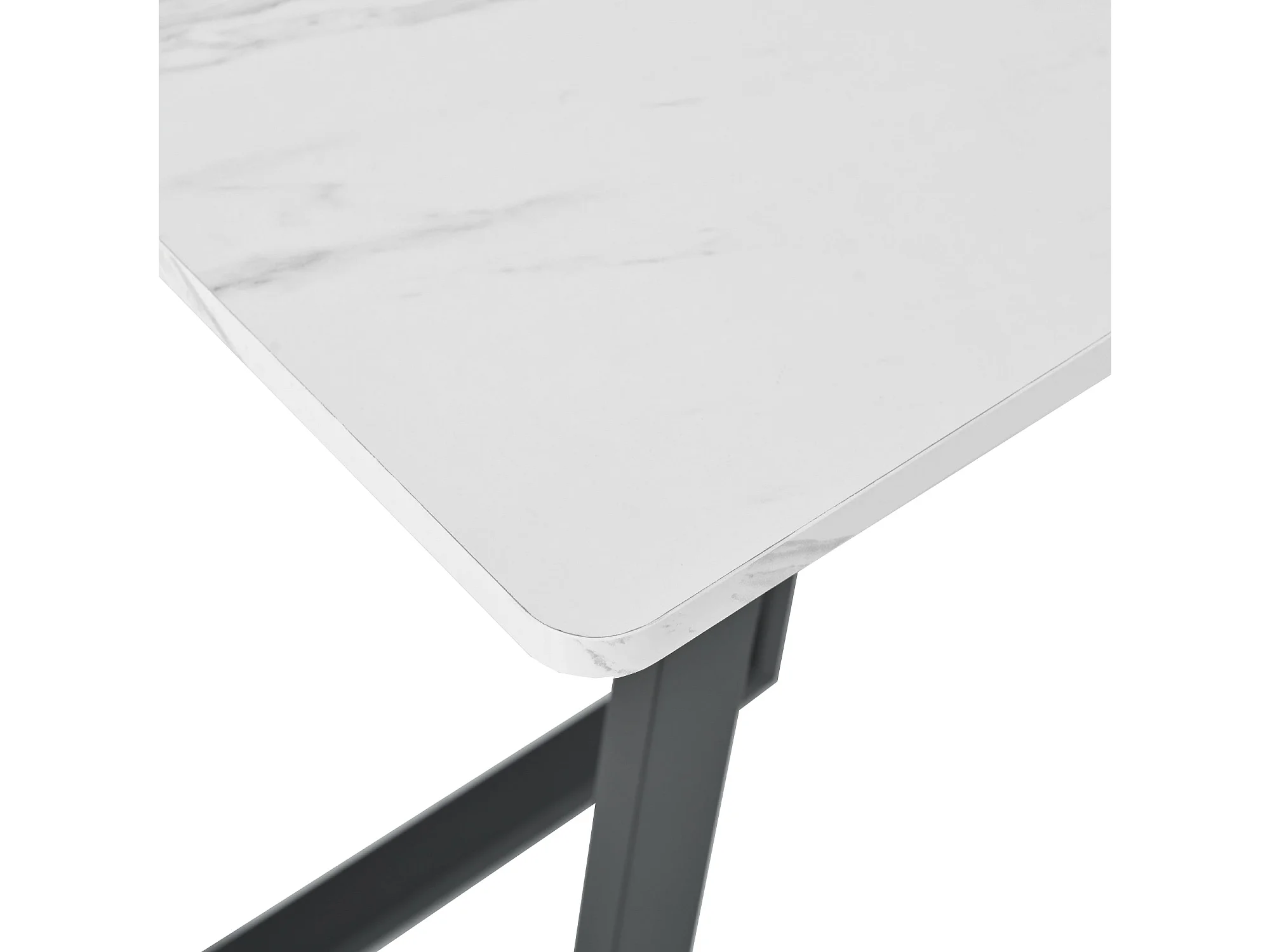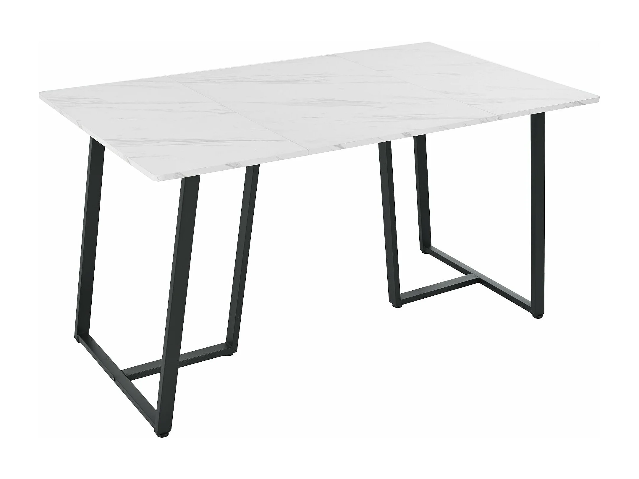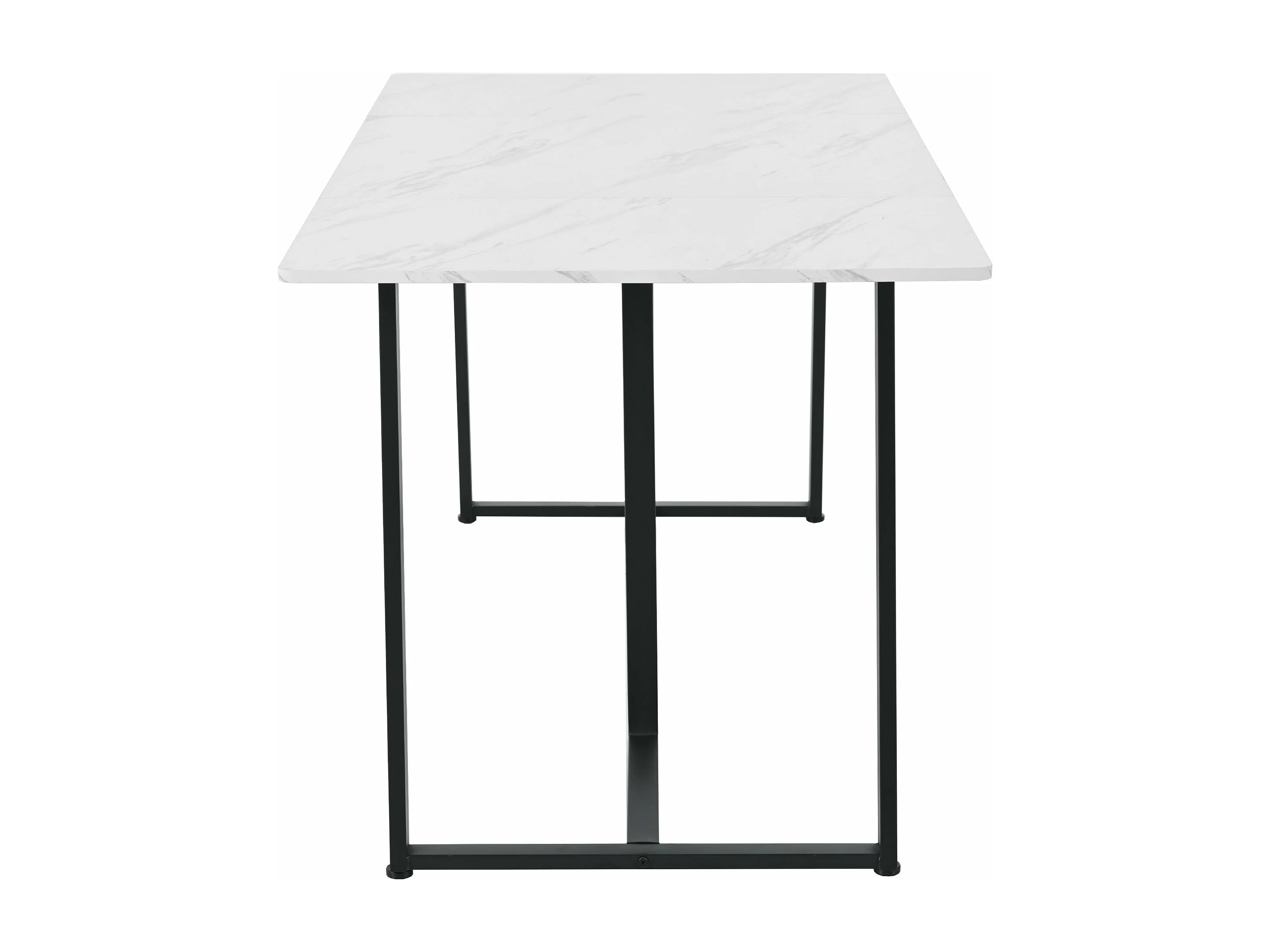 Table à manger moderne à motif de marbre - cadre en métal noir, blanc,d140cm×h75cm
