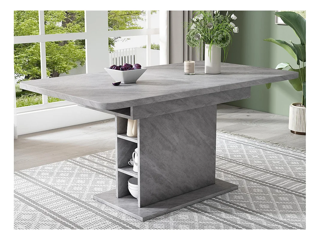 Table à manger moderne extensible avec rangement en dessous - Gris