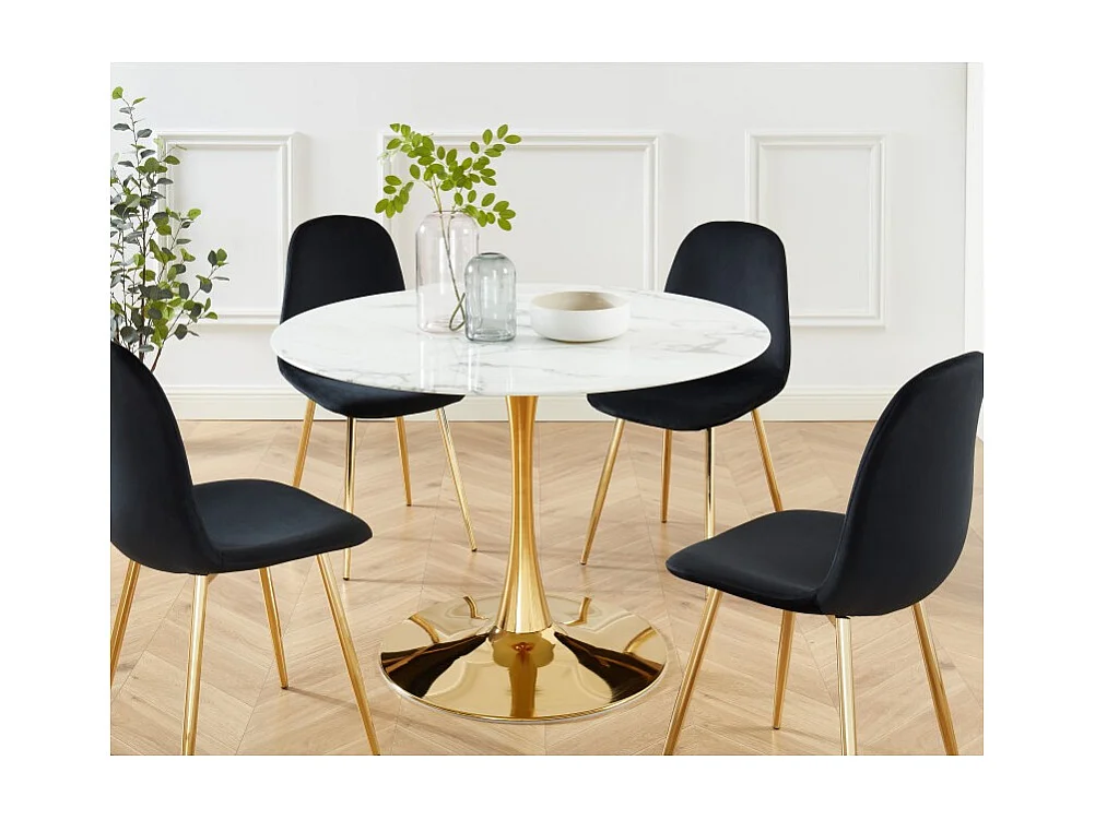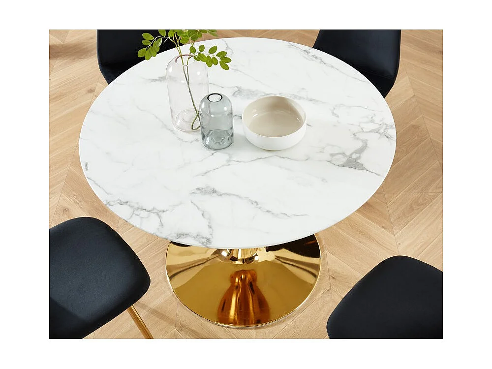 Table à manger MONIKA verre effet marbre 110cm pied doré