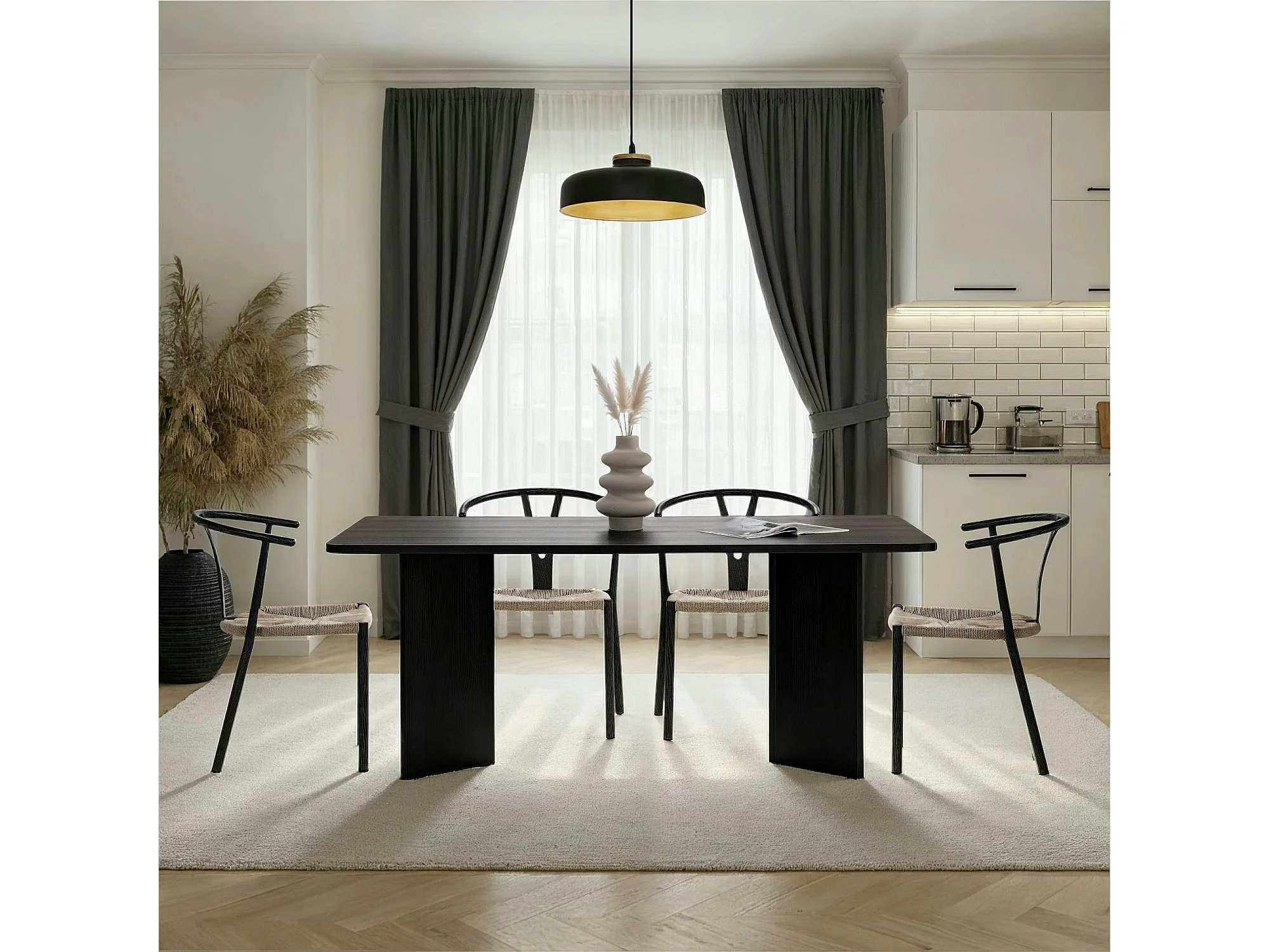 Table à manger noire bords ronds 180 cm MARFA