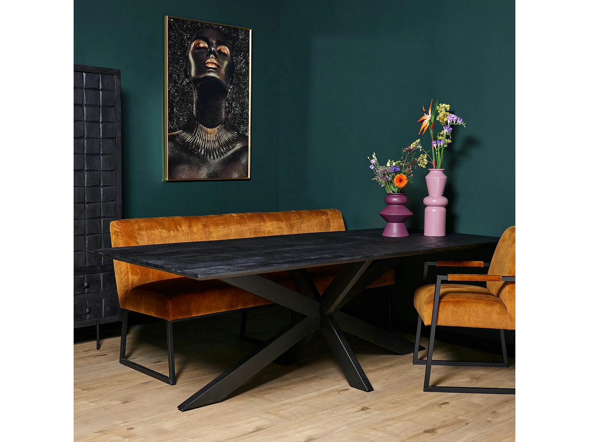 Table à manger noire en bois de manguier 180 cm ALVERA