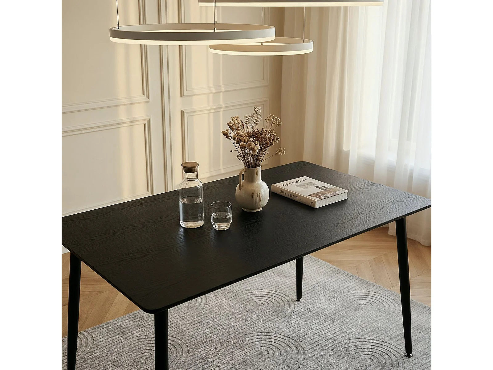 Table à Manger NORA Rectangulaire L 120 cm pour 4 Personnes, Noir, Design Moderne avec Plateau en MDF et Pieds Métalliques