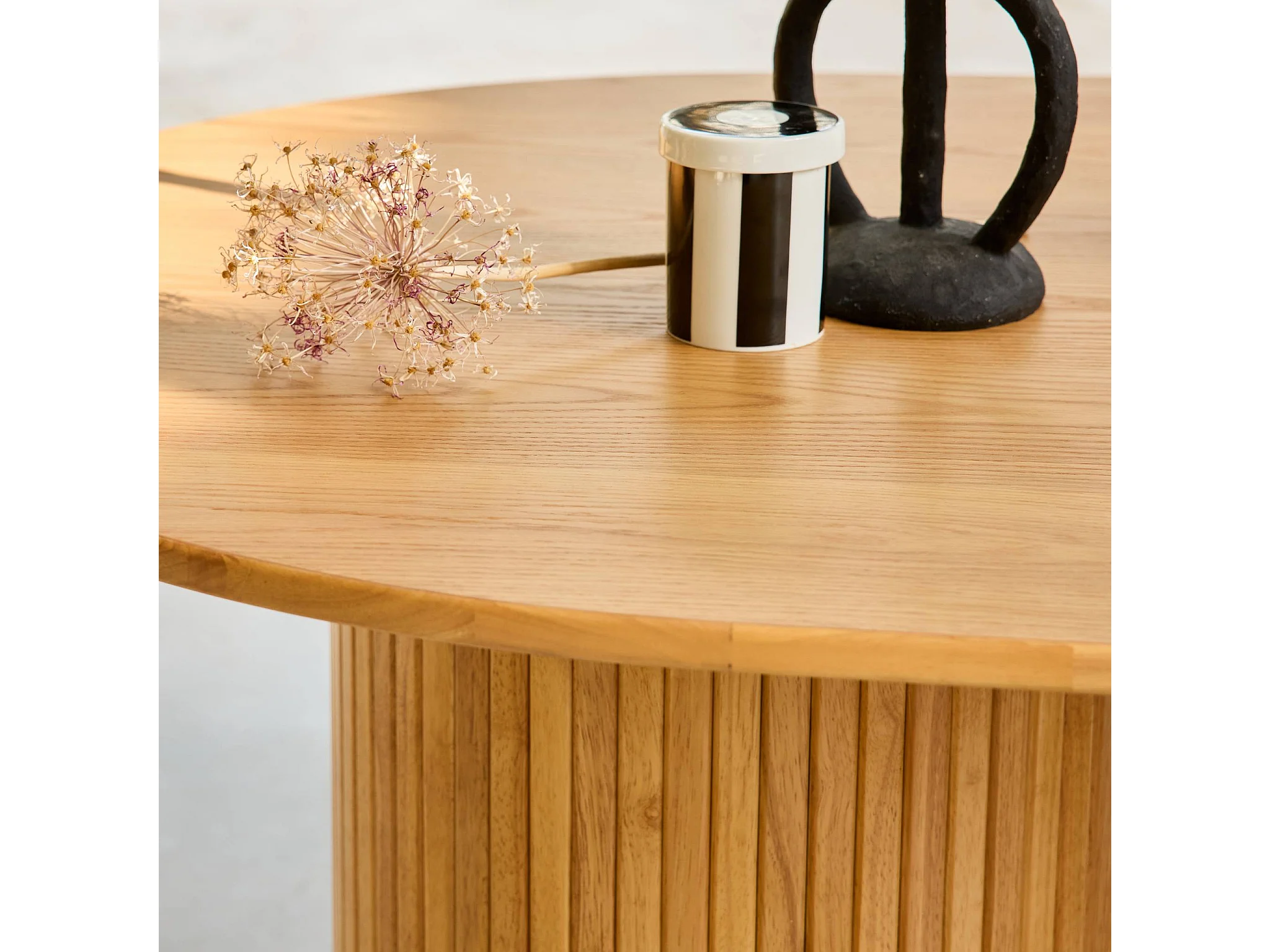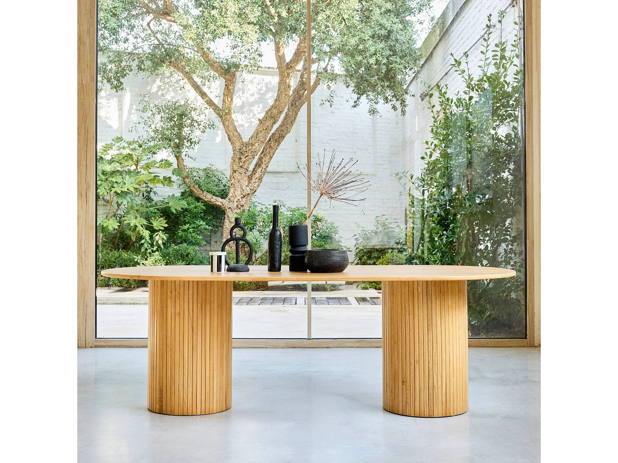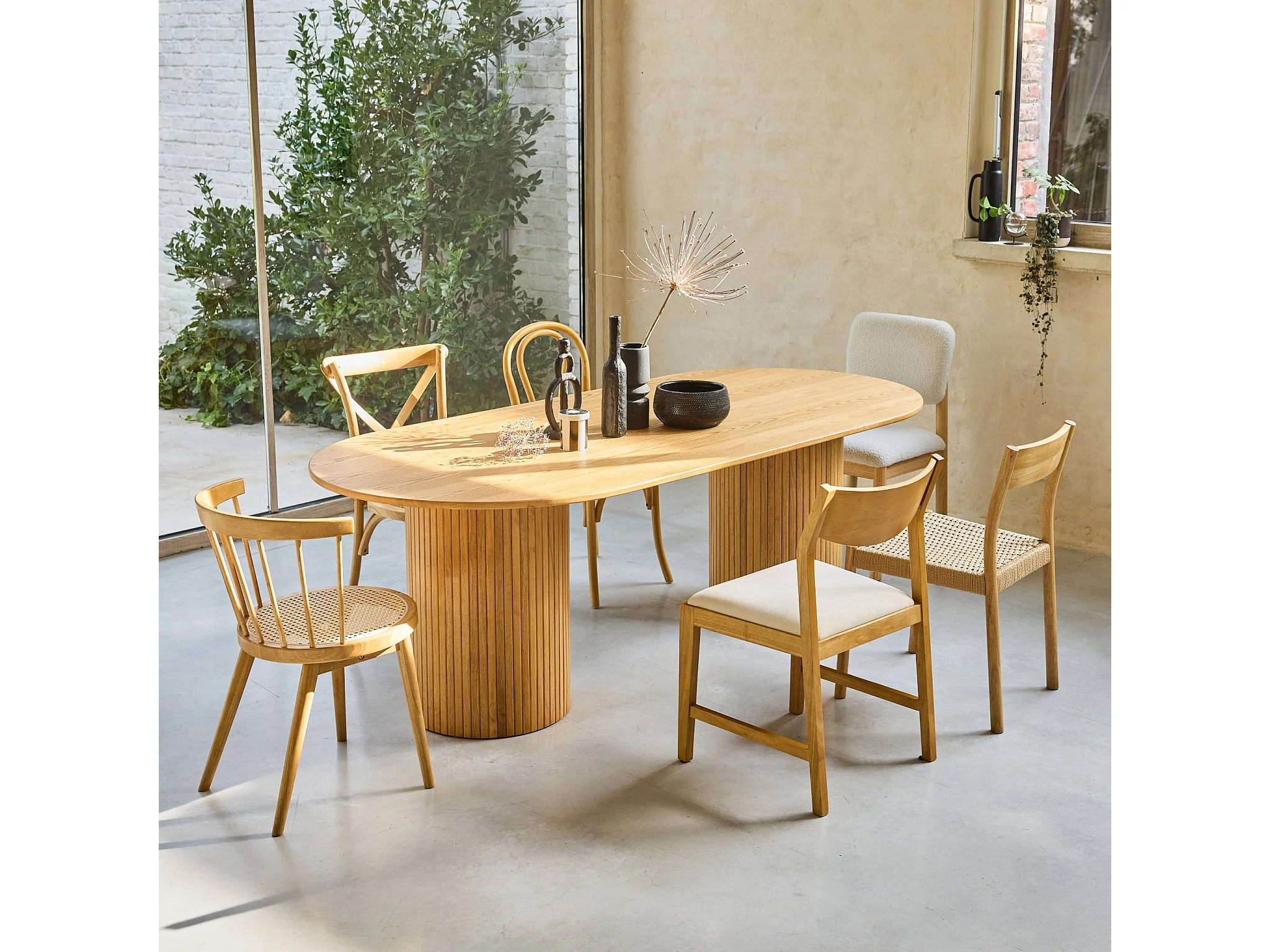 Table à manger oblongue bois d'hévéa et placage chêne 8 places naturel - L 220 x P 100 x H 73 cm - Estelle