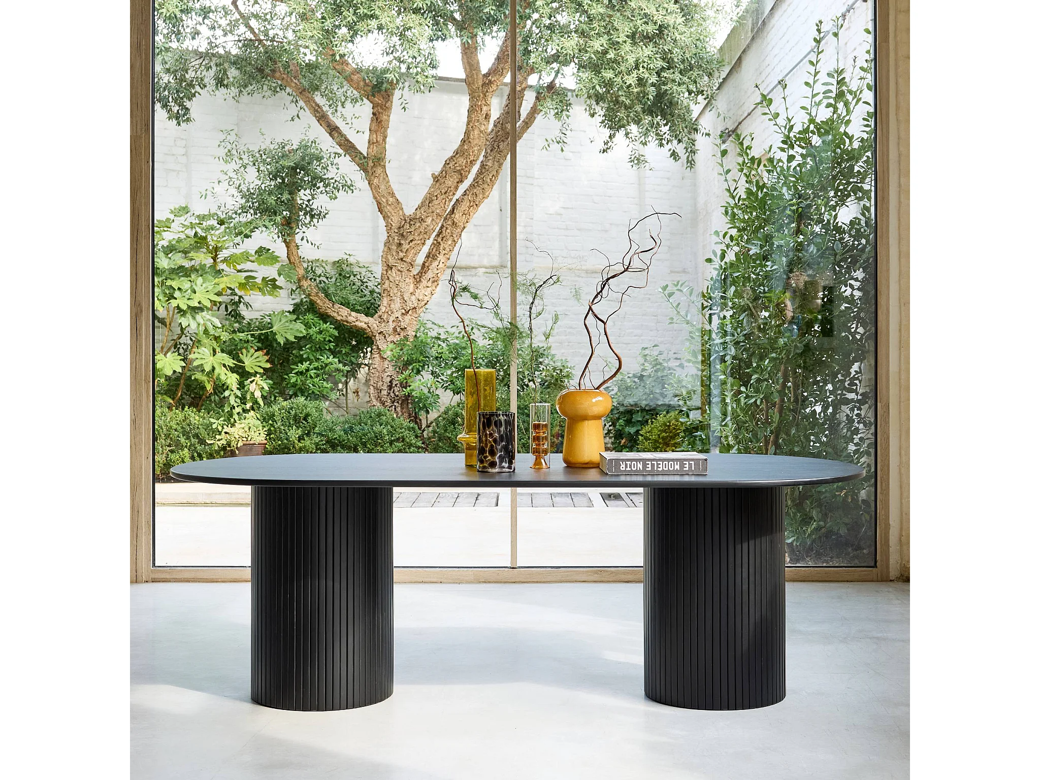 Table à manger oblongue bois d'hévéa et placage chêne 8 places noir - L 220 x P 100 x H 73 cm - Estelle