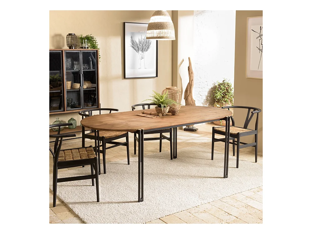 SIXTINE - Table à manger ovale 200x105cm plateau bois de teck recyclé