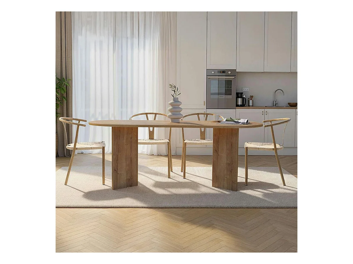 Table à manger ovale effet chêne pieds en V 200 cm MARFA