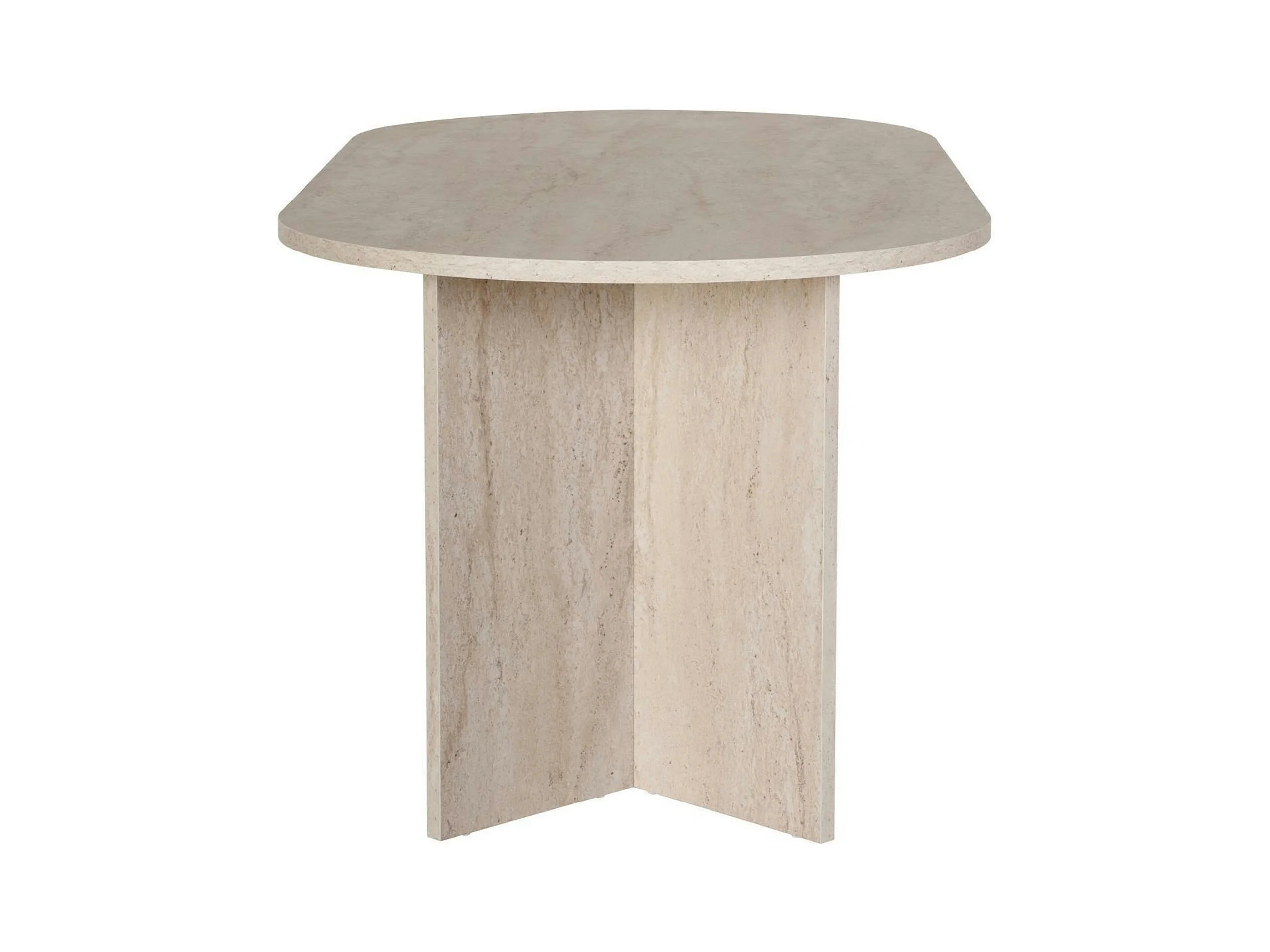 Table à manger ovale effet travertin pieds en V 200 cm MARFA