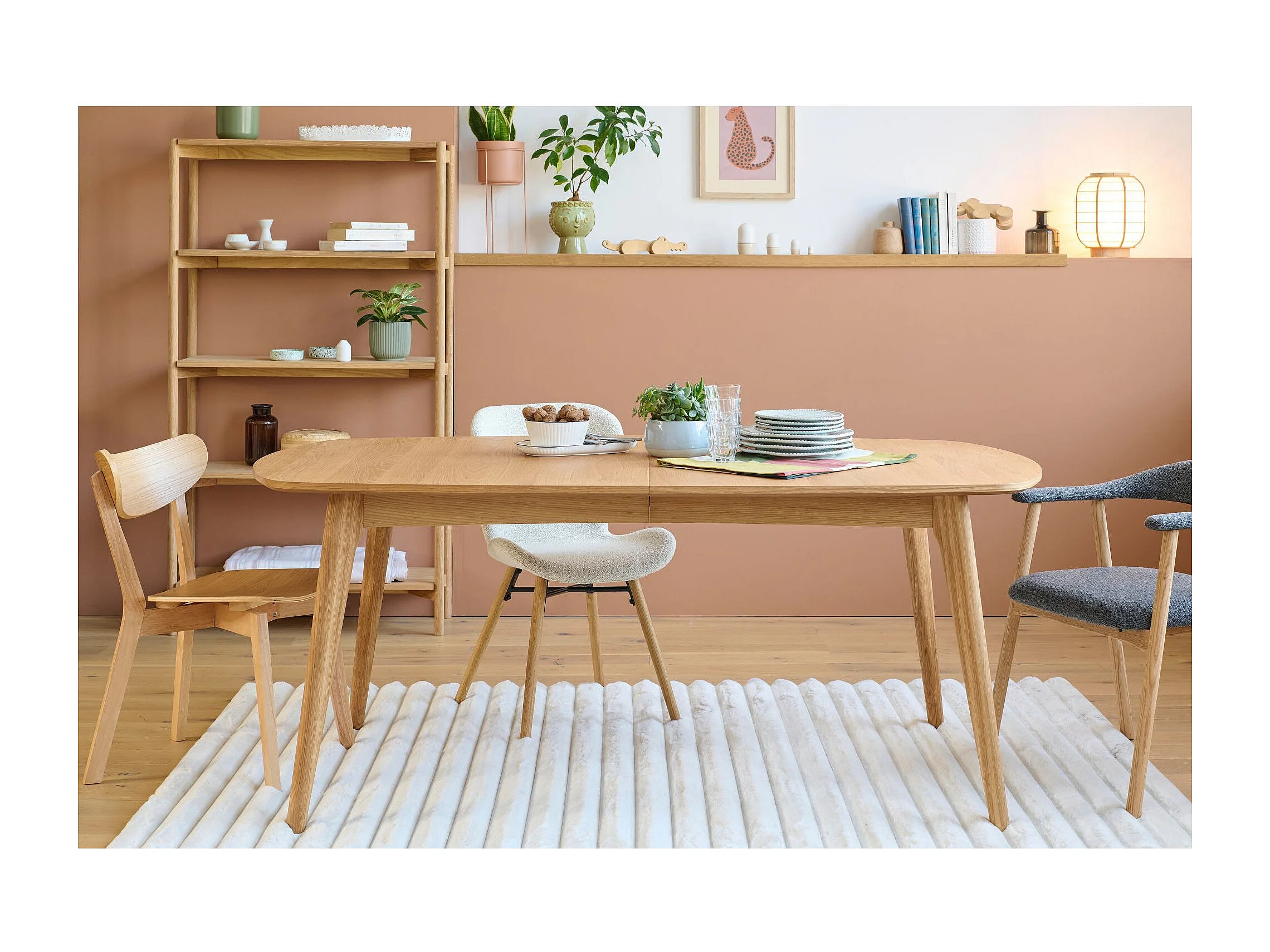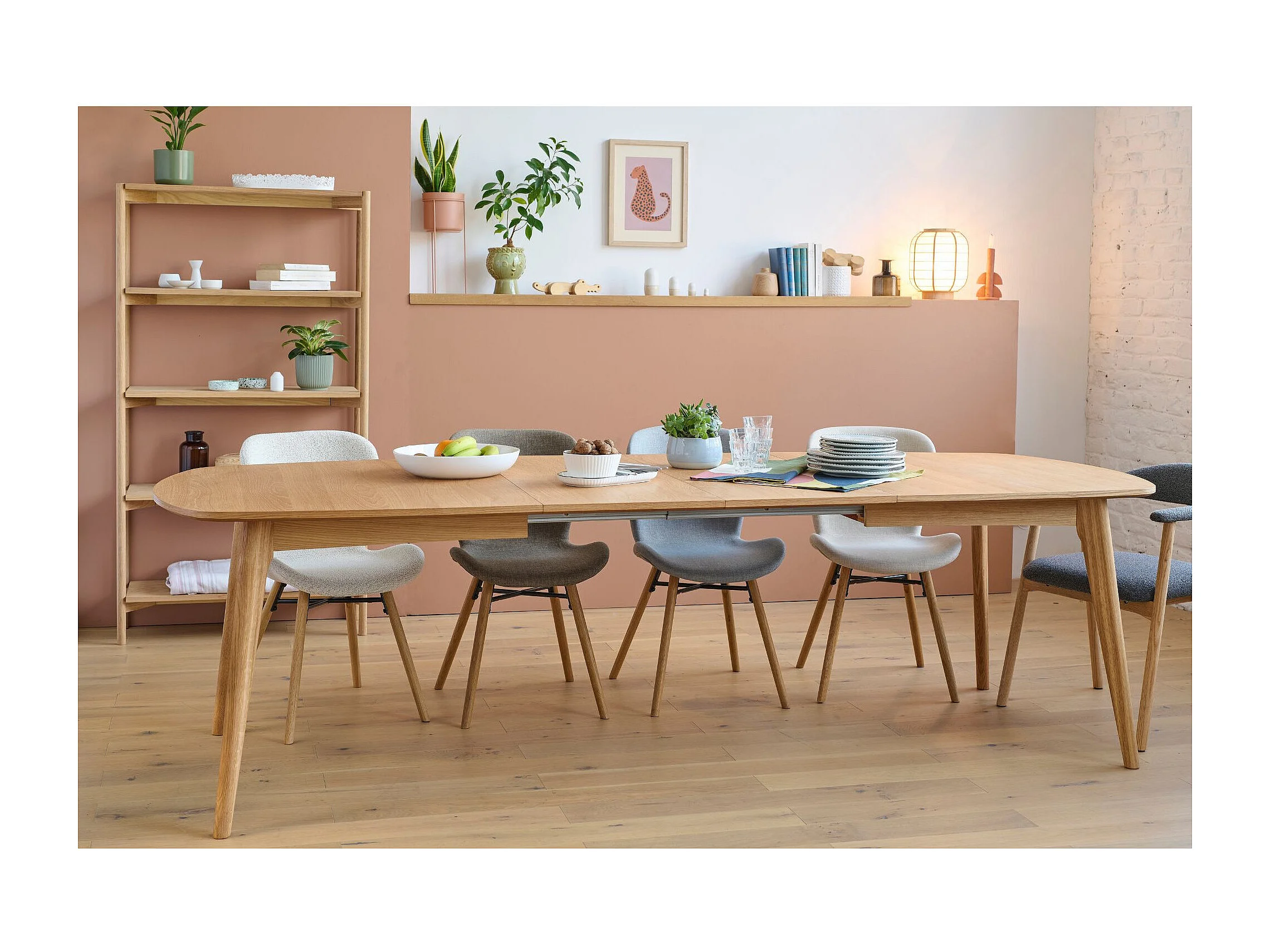 Table à manger ovale en bois + 2 allonges 8/12 places L180/270 - MARTINE