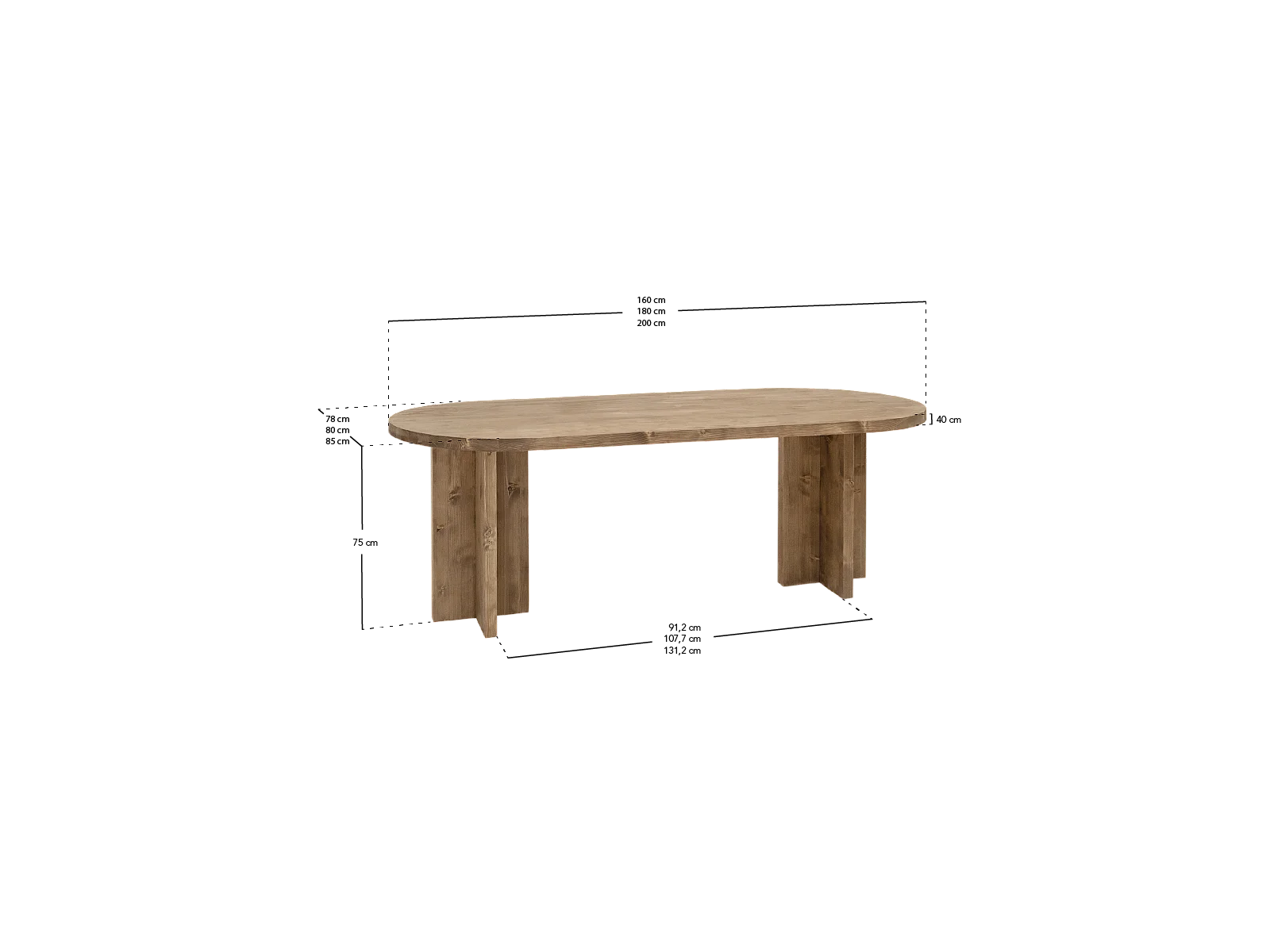 Table à manger ovale en bois de sapin noir 200x75cm - TOKYO - DECOWOOD