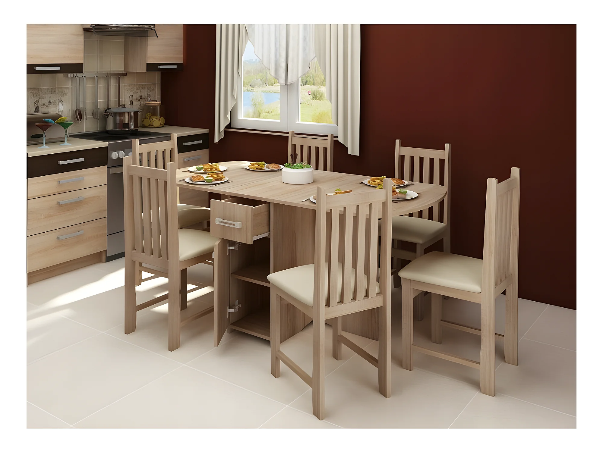 Table à manger ovale pliante avec 2 tiroirs couleur Or Artisan 160x80cm modèle:HOMNI 2 Table pliable