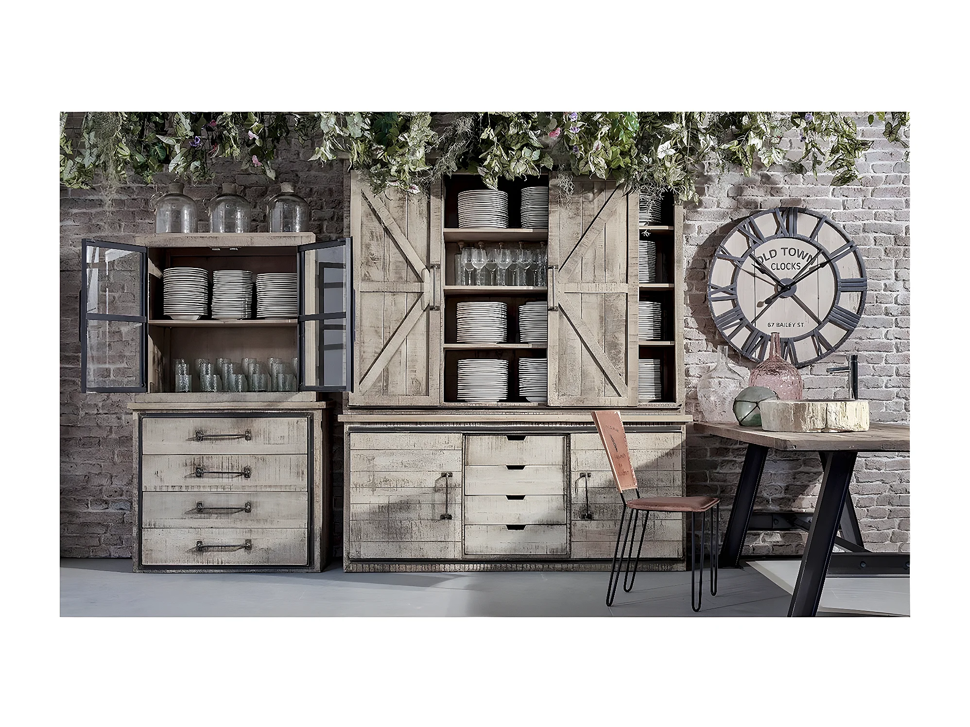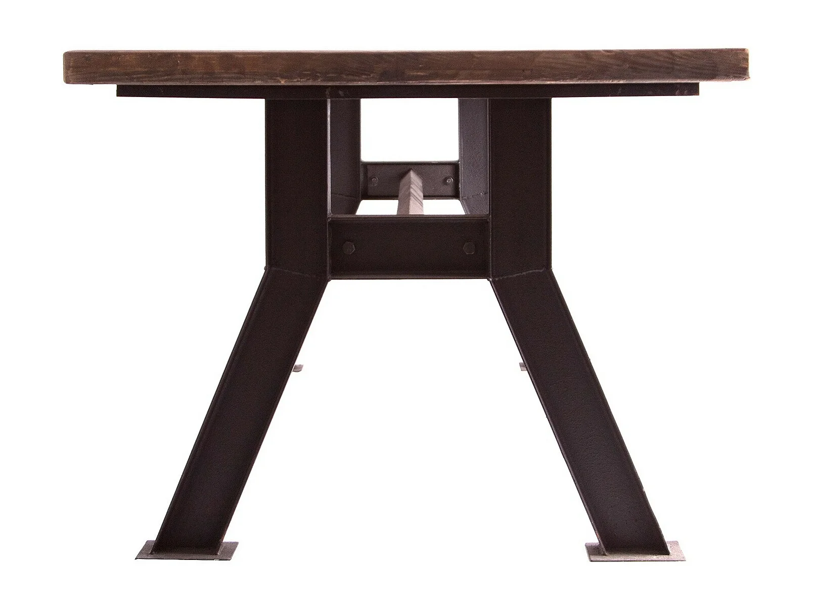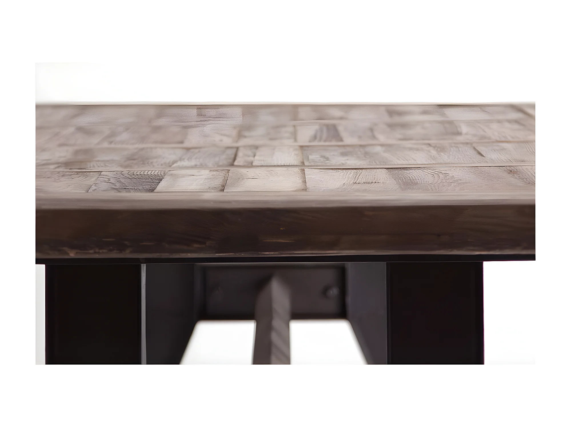Table à manger pin massif recyclé foncé et métal noir Vinka 240cm