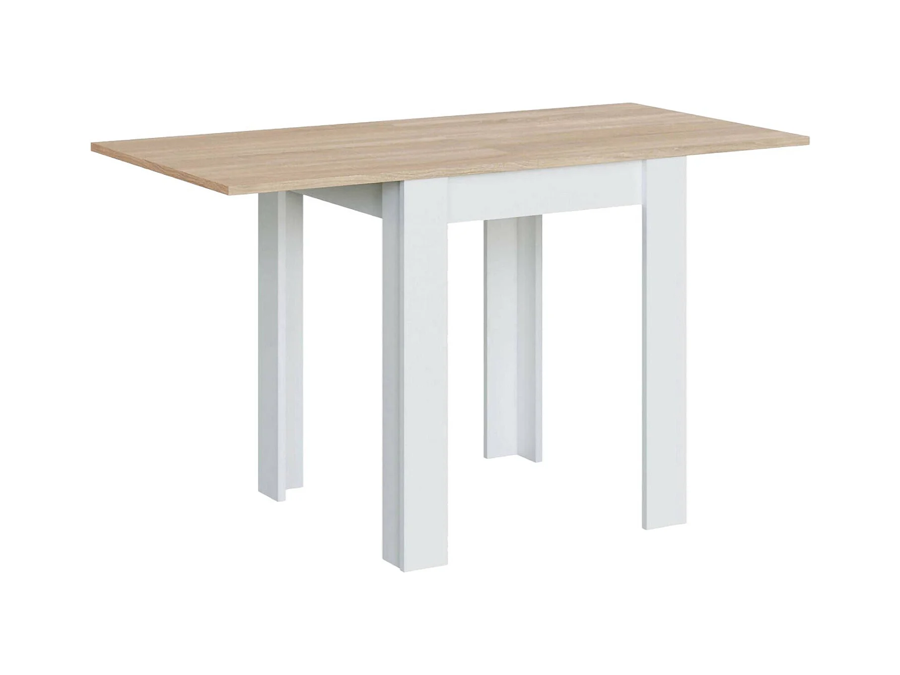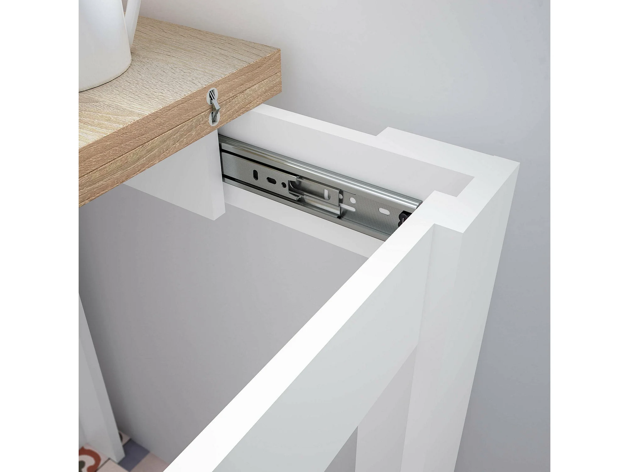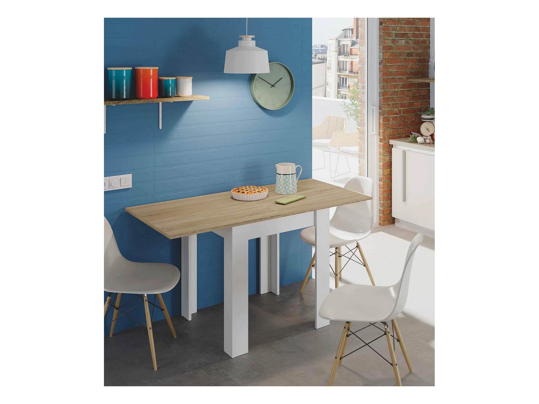 Table extensible Dkuavit, Etagère à manger pliante avec ouverture pour livre, Table d'appoint pliable, 67x67/135h79 cm, Blanc et Chêne