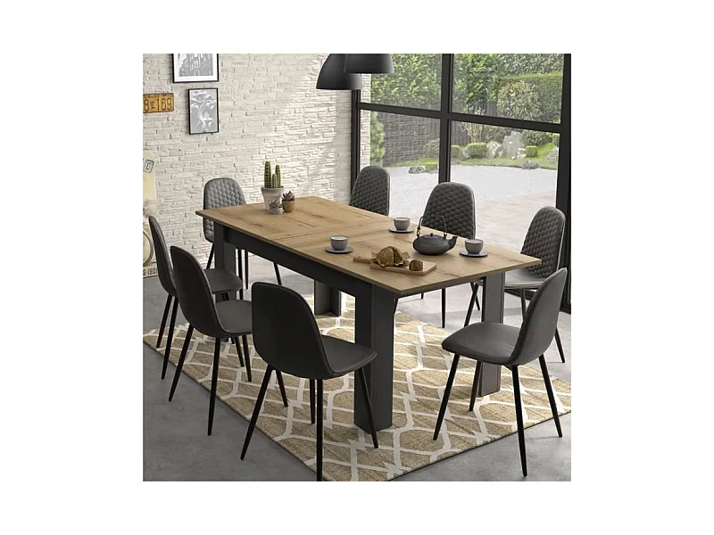 Table a manger pour 4 a 8 personnes - Rectangulaire + allonge - Style industriel - MANCHESTER - L 200 x P 90 x H 77 cm