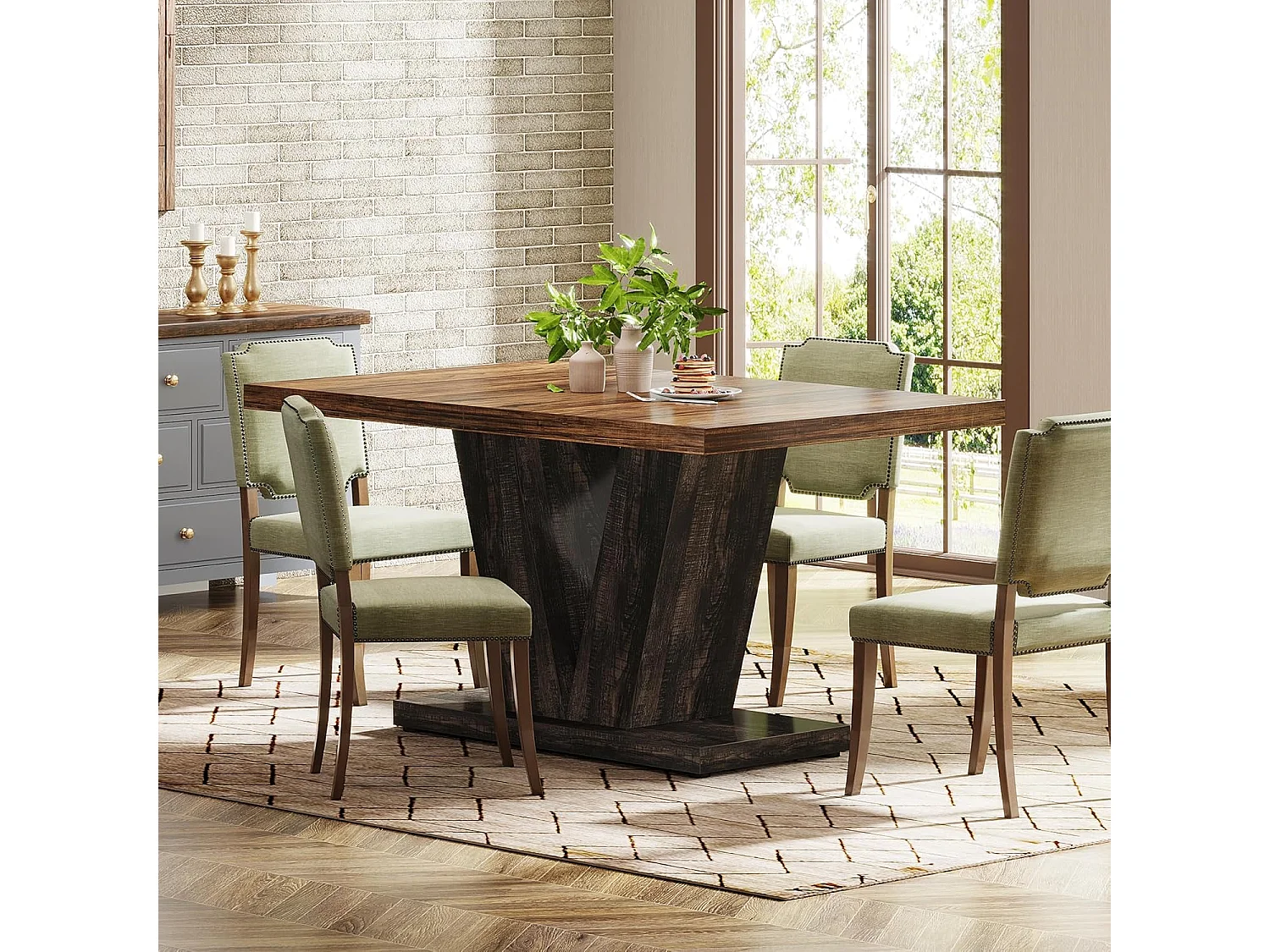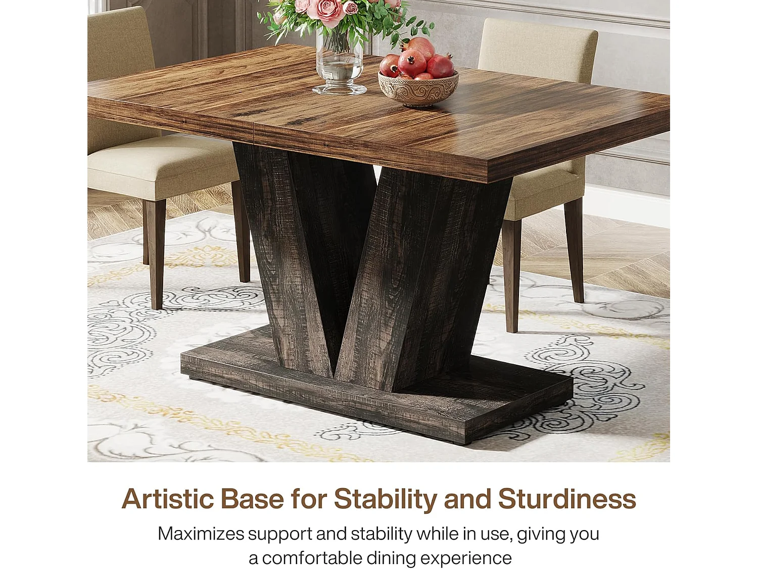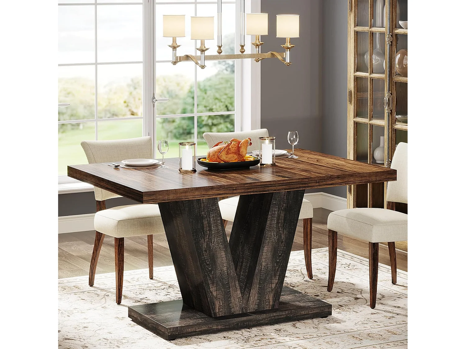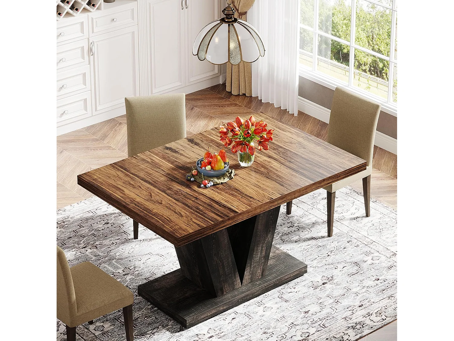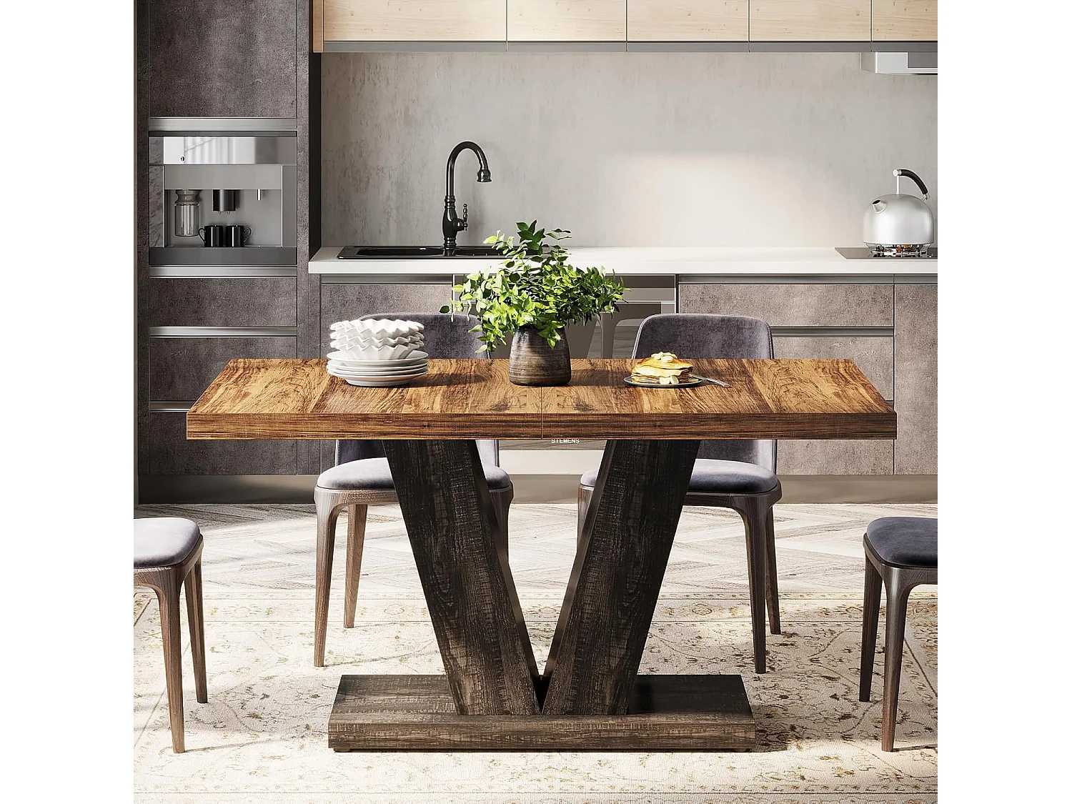 Table à manger pour 4 personnes, tables de salle à manger modernes, table de cuisine rectangulaire avec pied en V