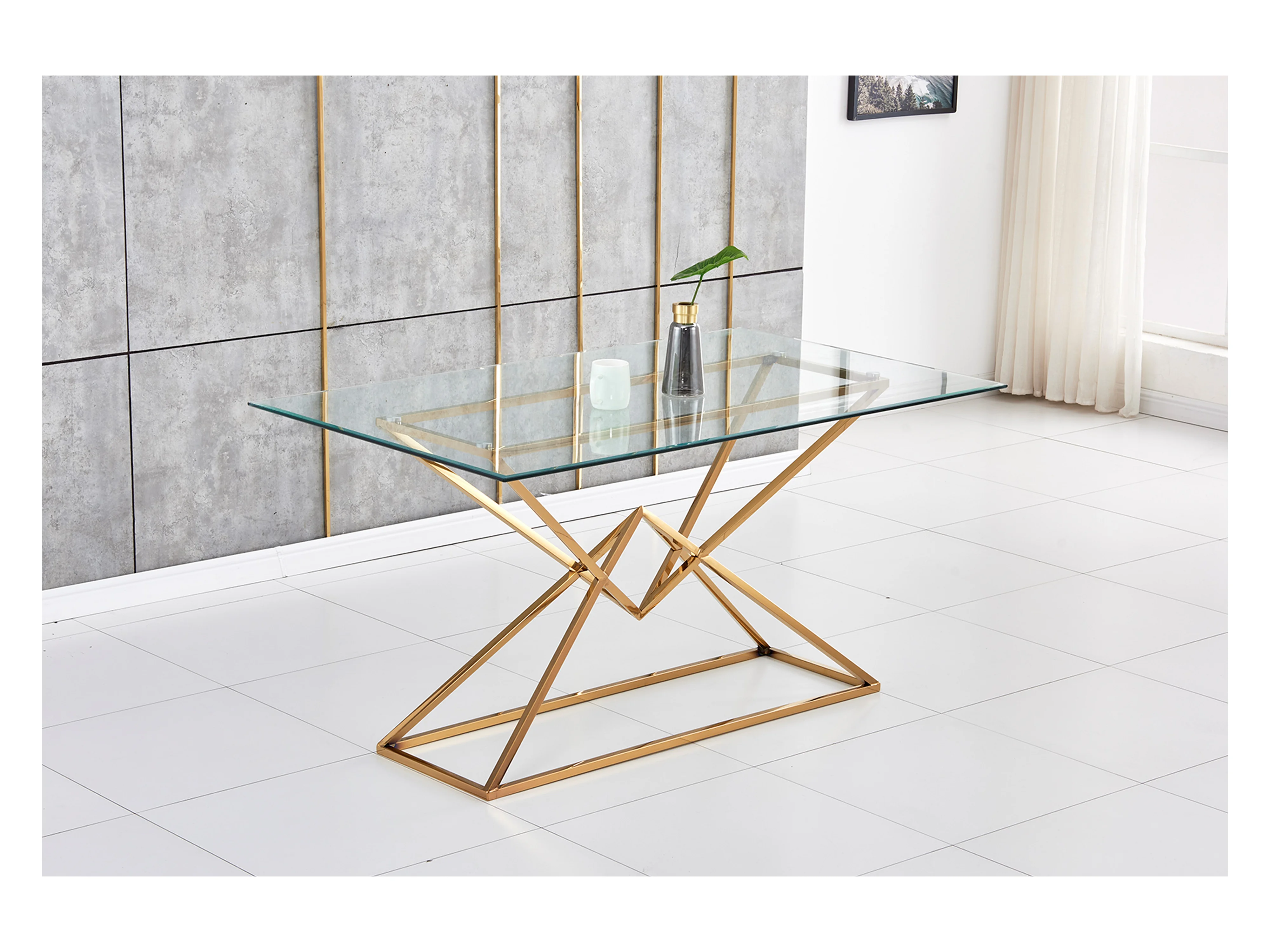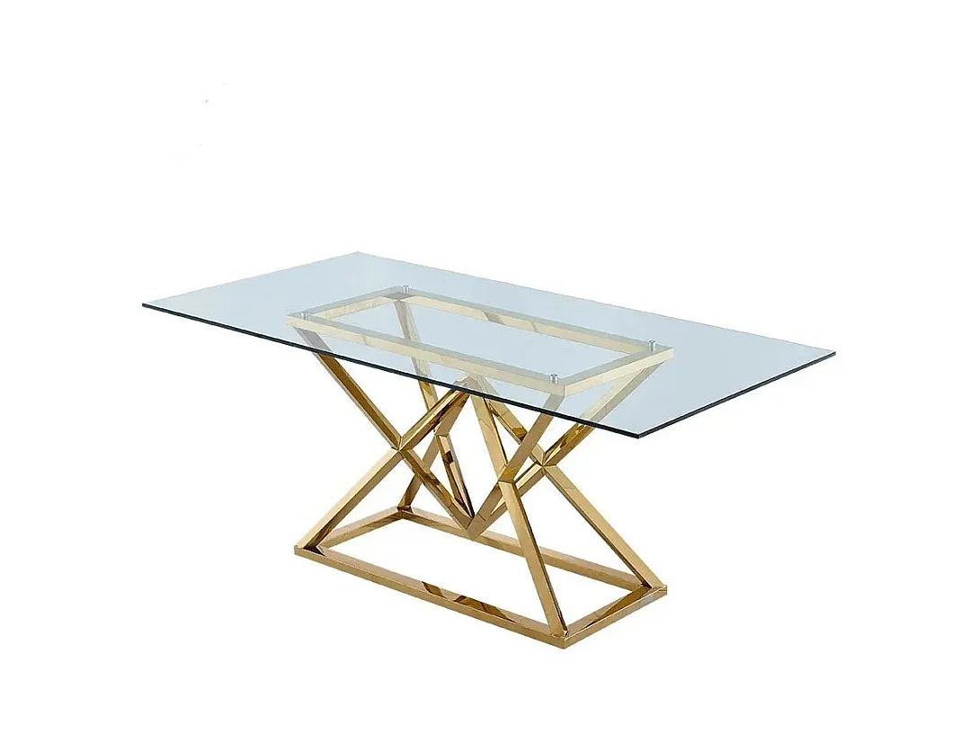 Table à manger PYRAMIDE plateau en verre et structure en Gold pour 4 à 8 personnes