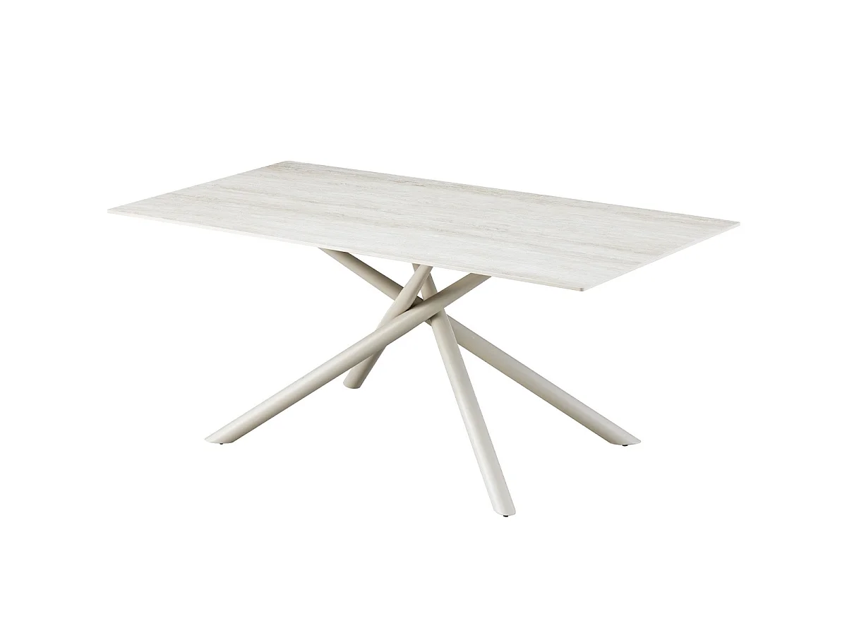 Table à manger rectangulaire 8 pers. en céramique effet Travertin et piètement blanc 180x90 cm - Nevel