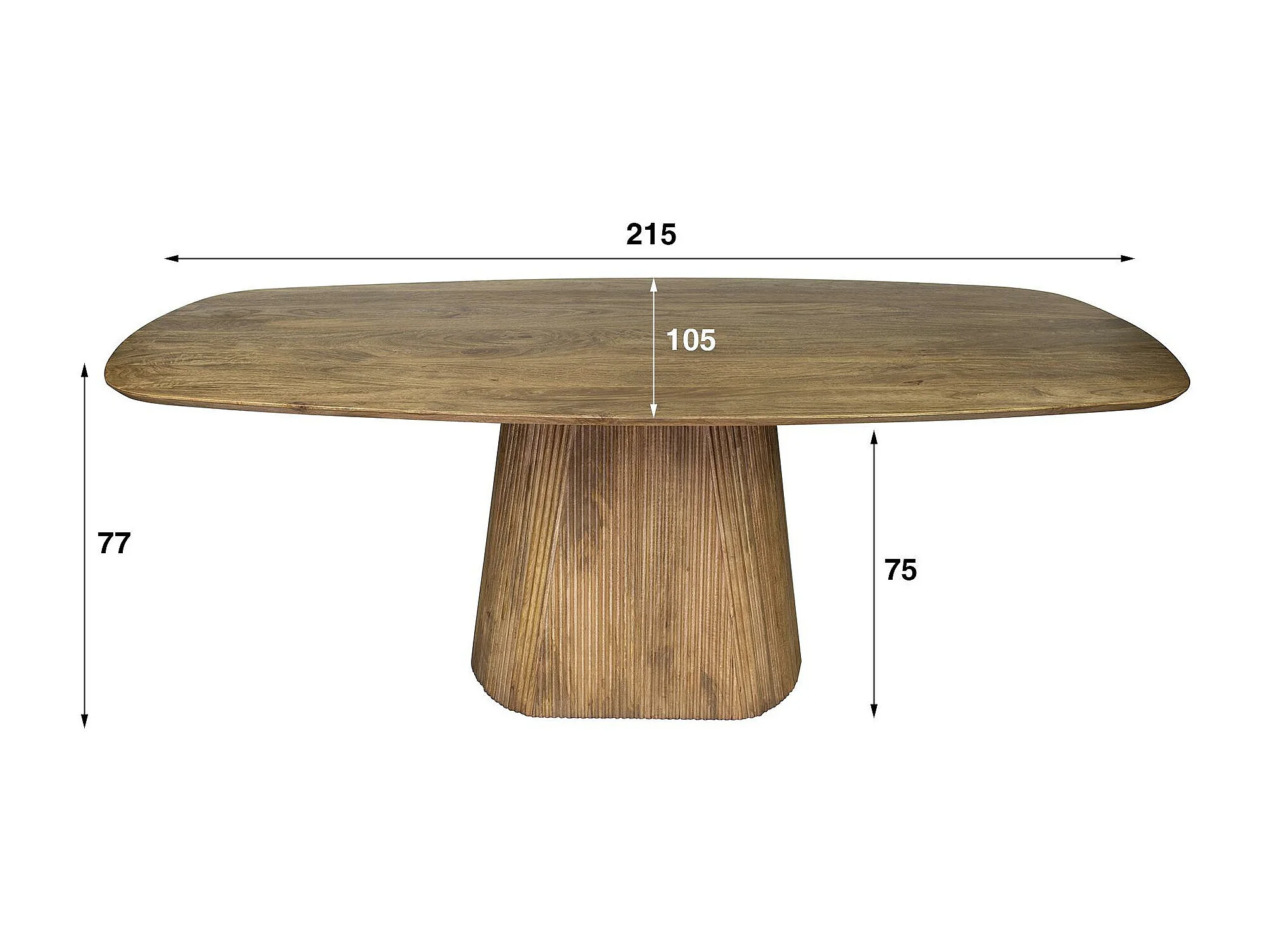Table à manger rectangulaire avec pied central rainuré en bois de manguier 215 cm CREEK