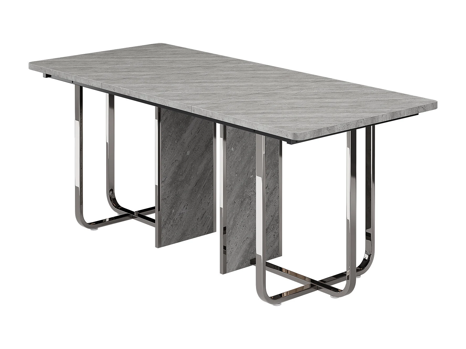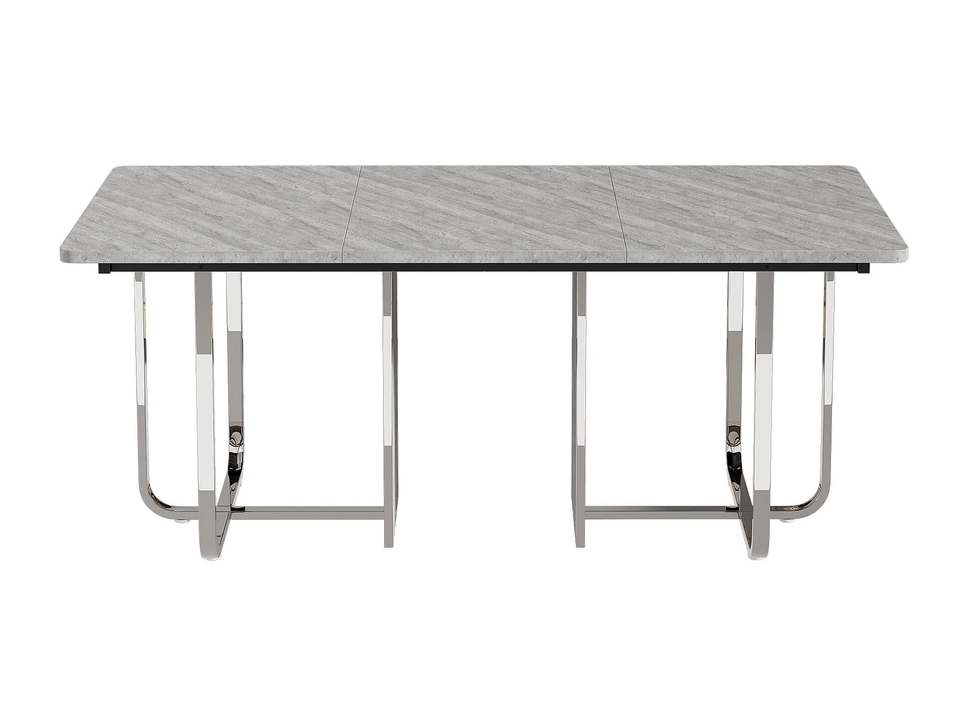 Table à manger rectangulaire avec plateau gris et métal argenté - pour 6 à 8 personnes