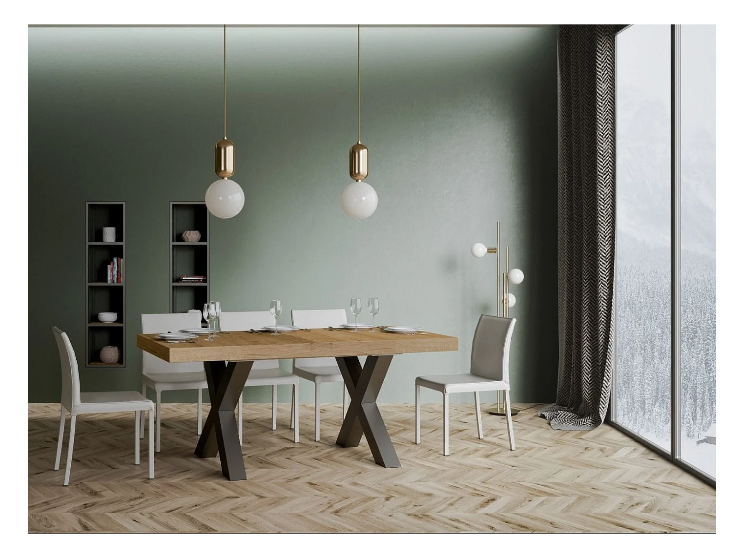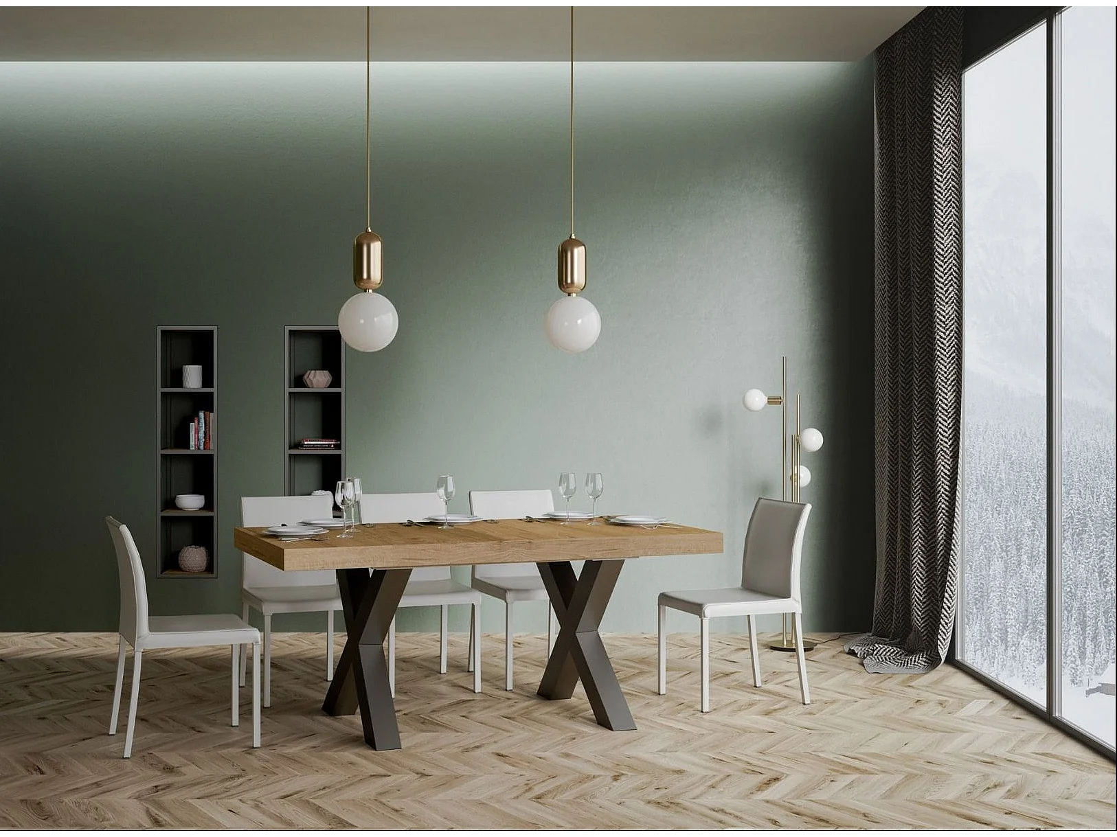 Table à manger rectangulaire bois clair et pieds métal gris foncé Tsara 160cm