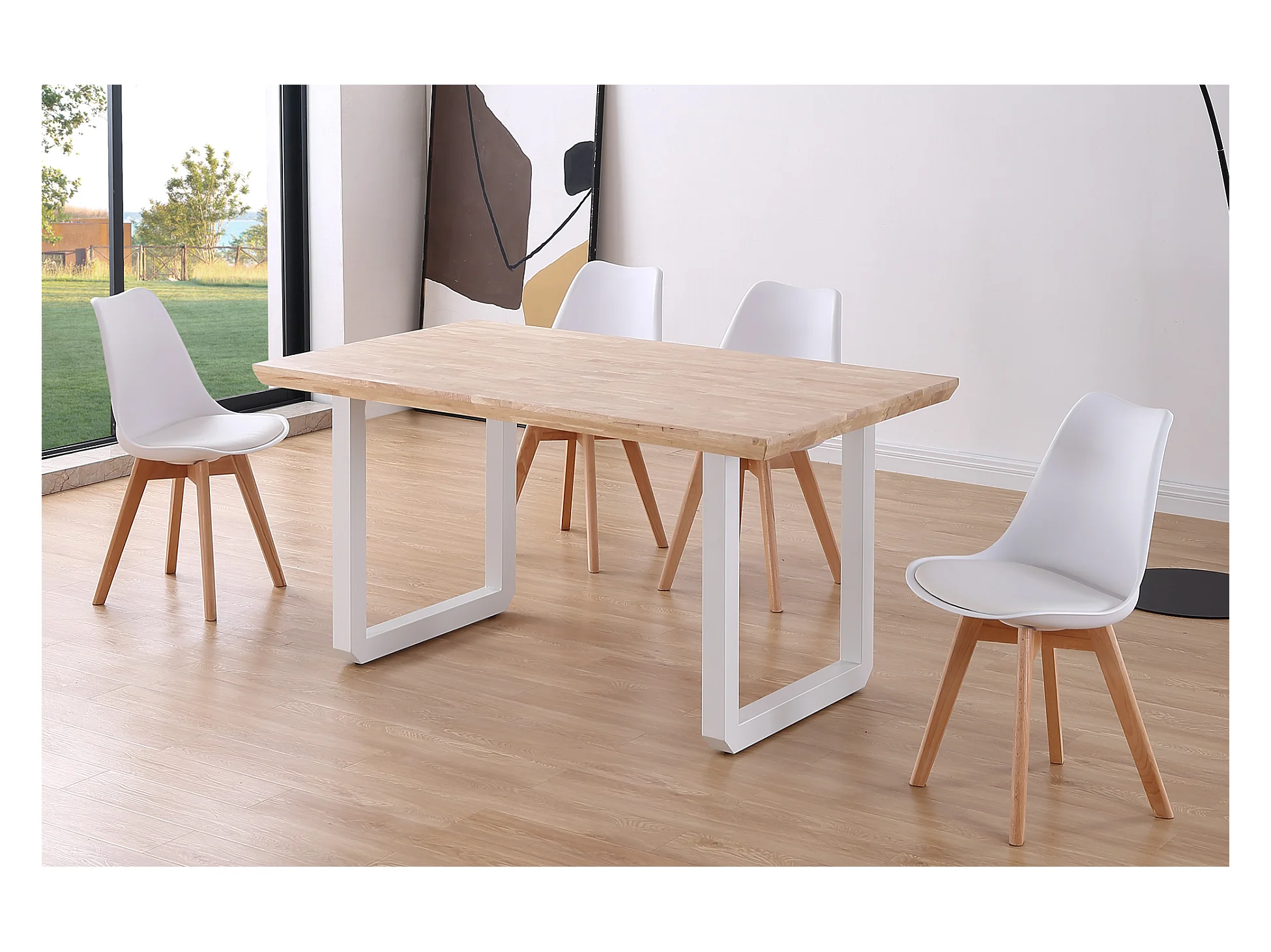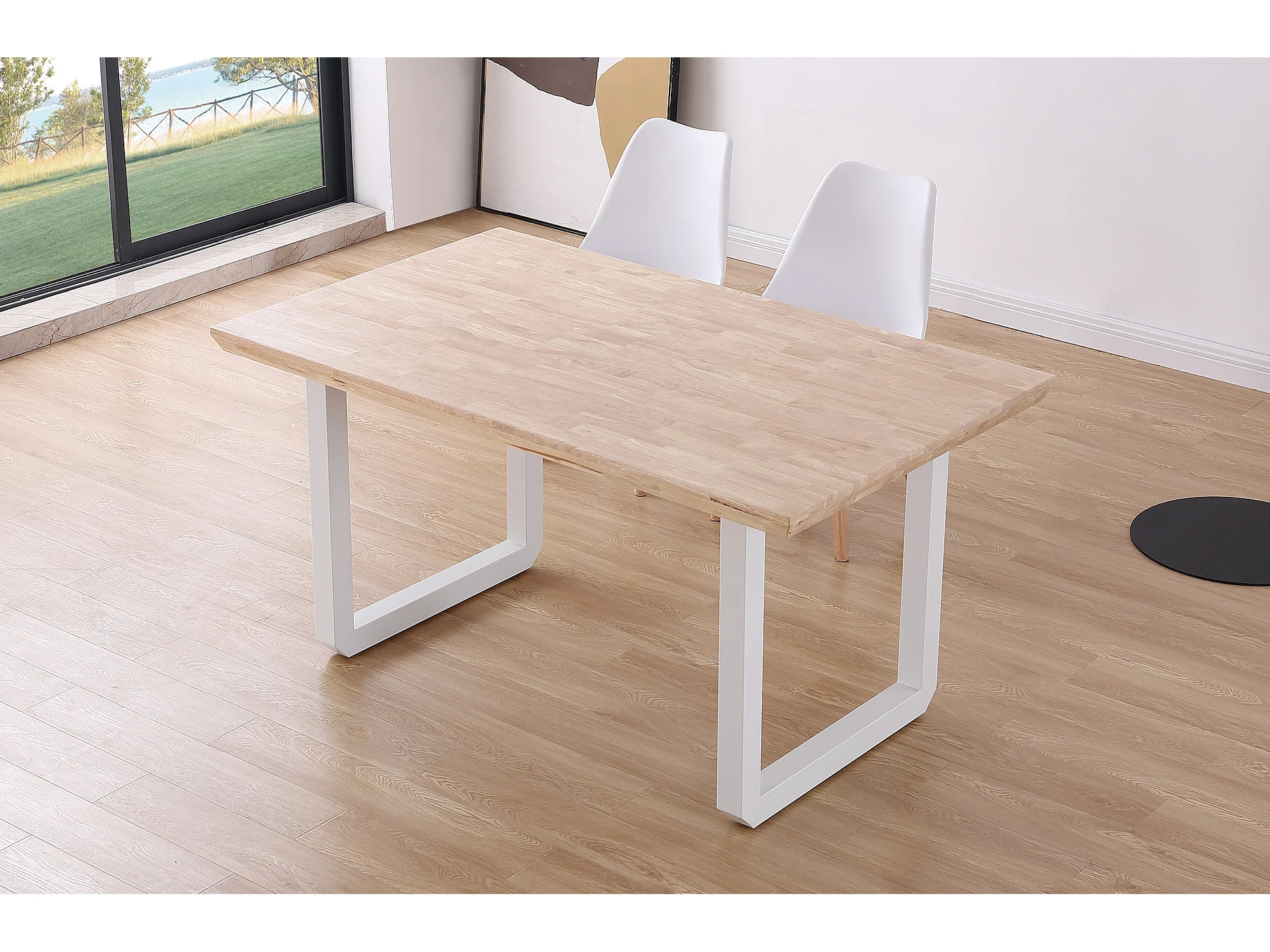 Table à manger rectangulaire en bois coloris chêne nordique pieds blanc - longueur 150 x profondeur 90 x hauteur 77 cm