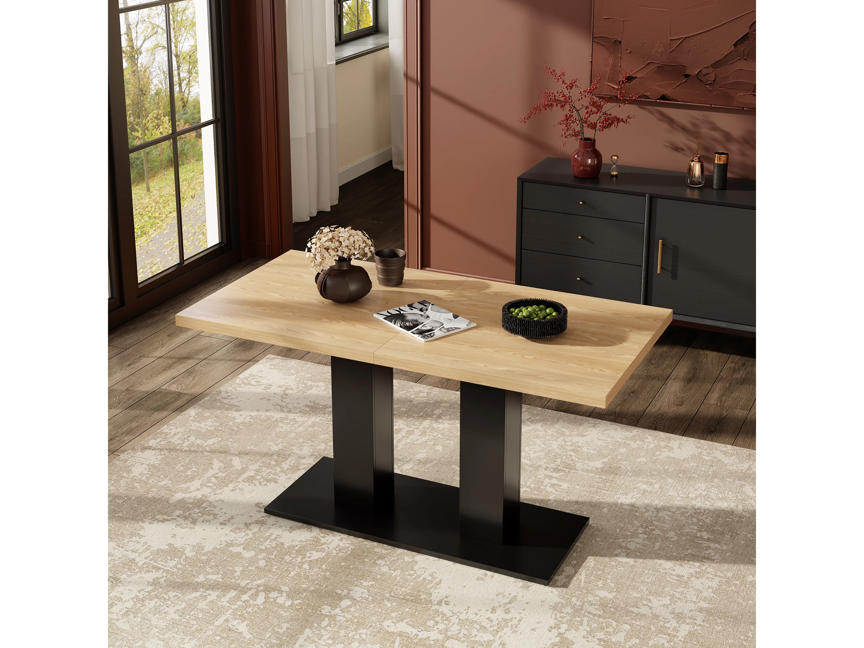 Table à manger rectangulaire extensible 140/180x70x75 cm - 6 à 8 personnes - Plateau épais - MDF - Naturel