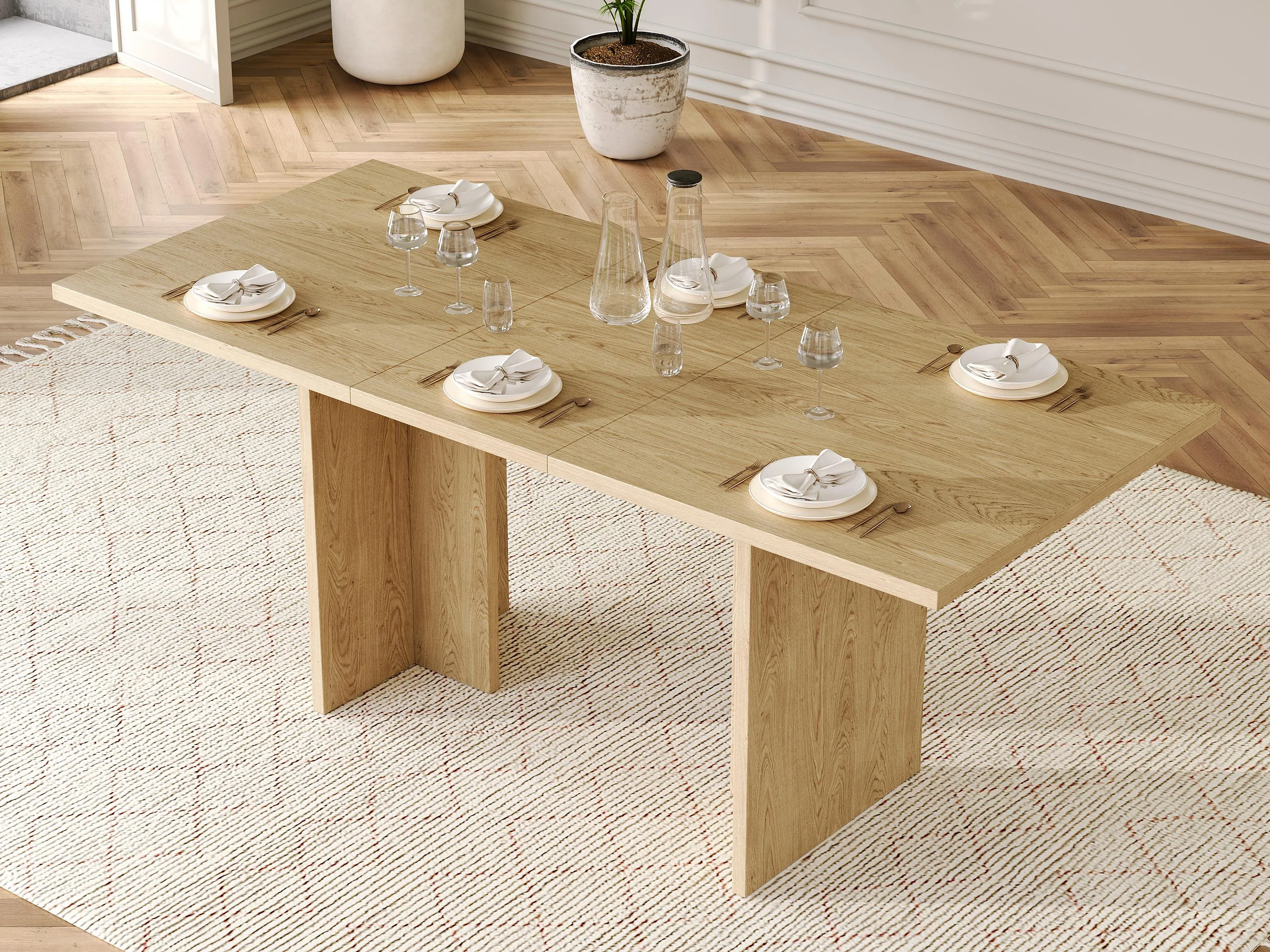 Table à manger rectangulaire extensible 140/180x80x75 cm - Pour 6 à 8 personnes - Plateau épais - Style minimaliste - Naturel