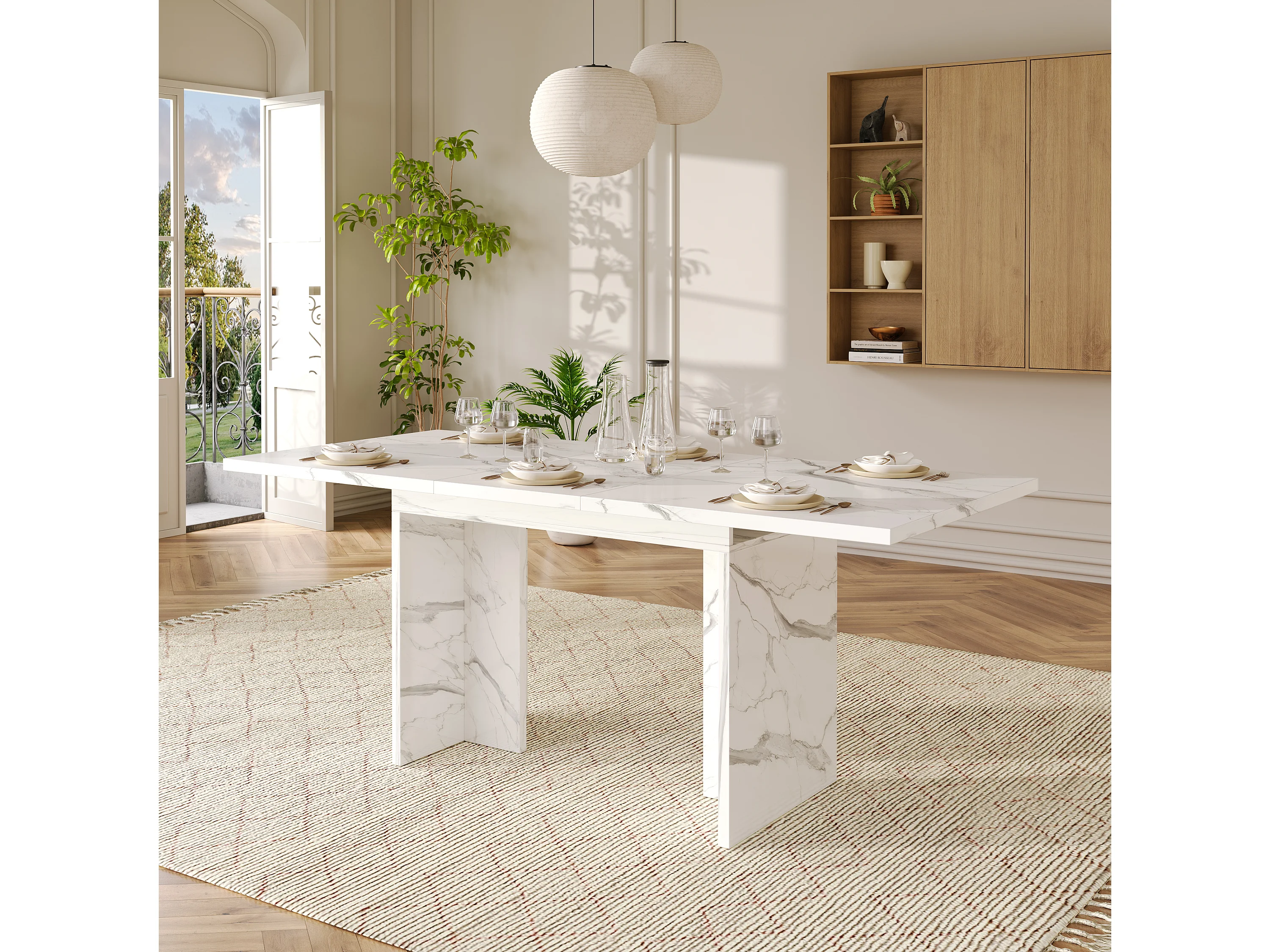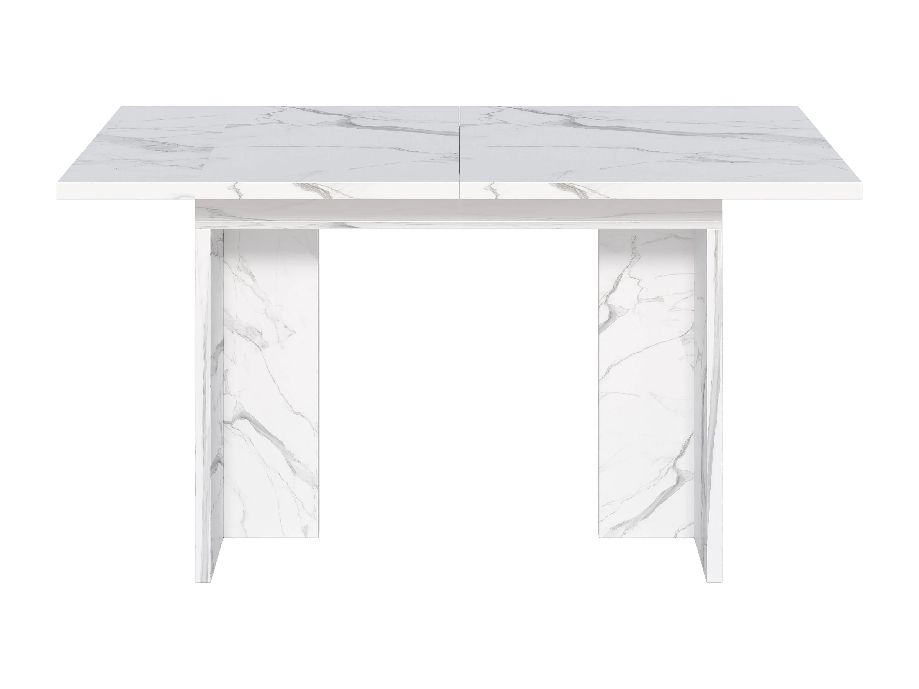 Table à manger rectangulaire extensible 140/180x80x75 cm - Pour 6 à 8 personnes - Plateau épais - Texture de marbre - Blanc