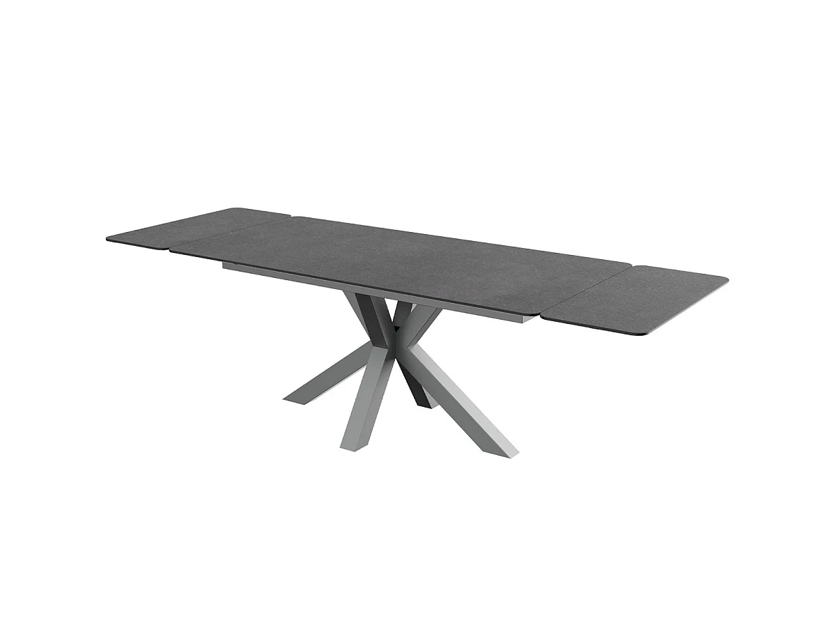 Table à manger rectangulaire extensible 8/10 pers. en céramique gris anthracite et piètement noir 180/260x100 cm - Stromboli