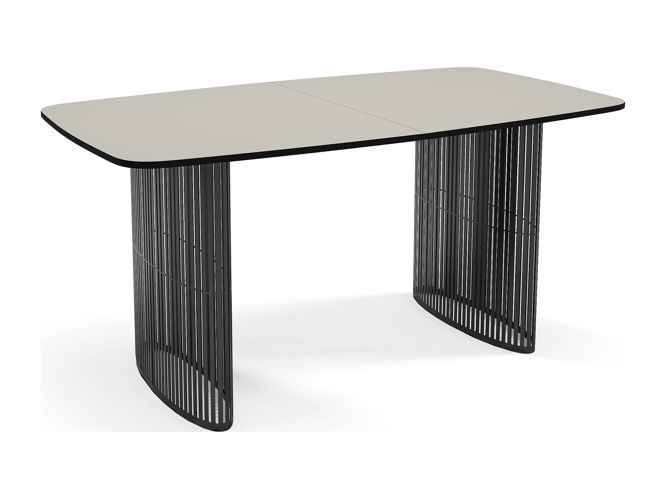 Table à Manger Rectangulaire Extensible à Lamelles Style Loft – 200 à 280 cm – Table avec Pieds en Métal Noir, Coins Arrondis pour 12-16 Personnes – Beige Cachemire
