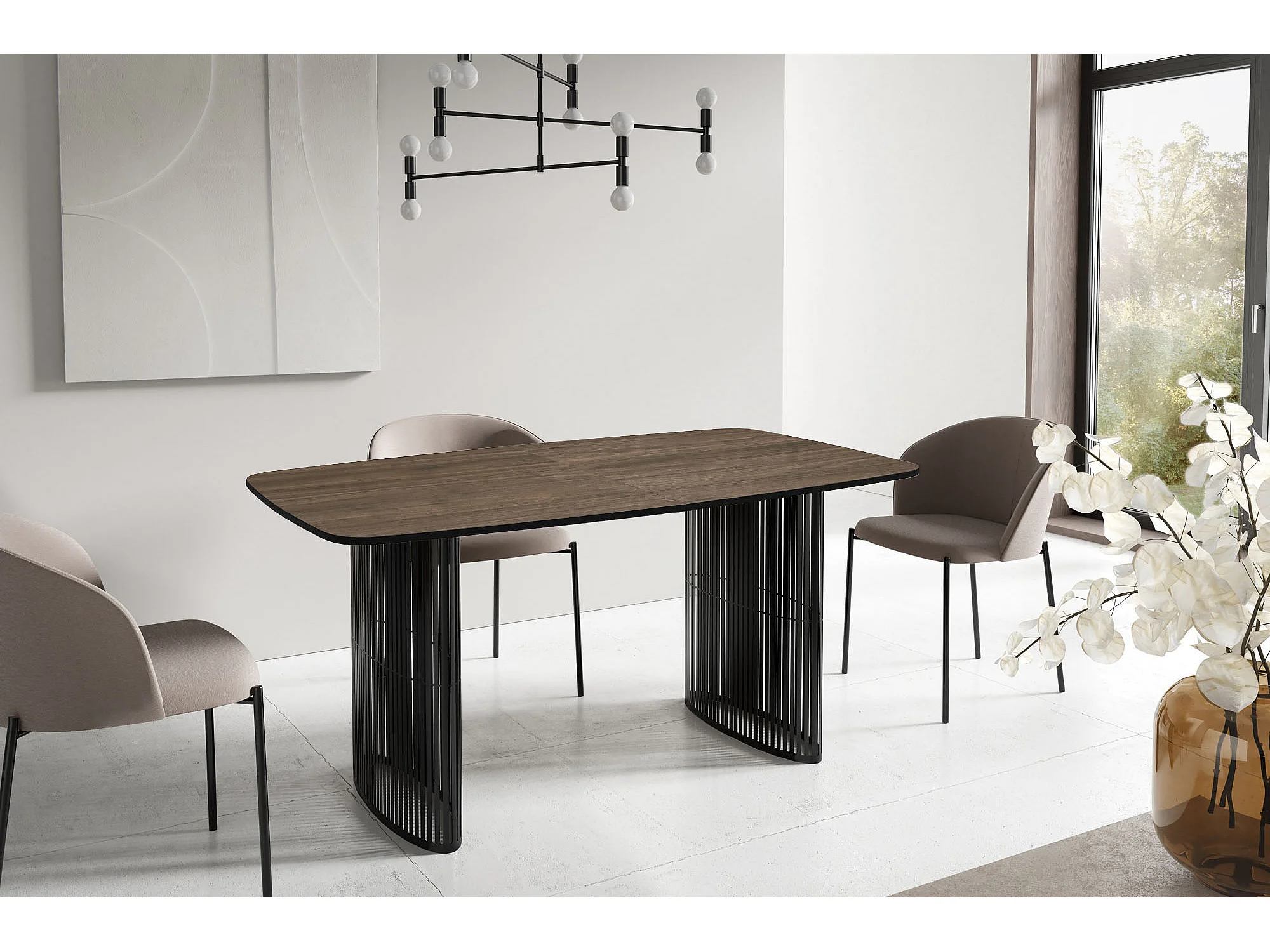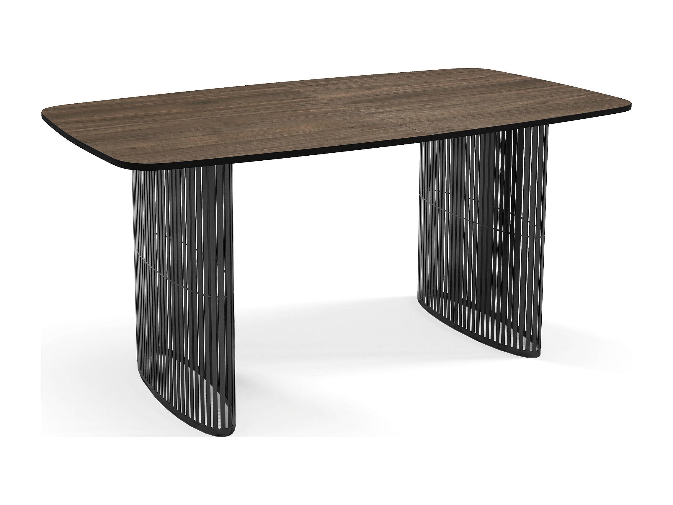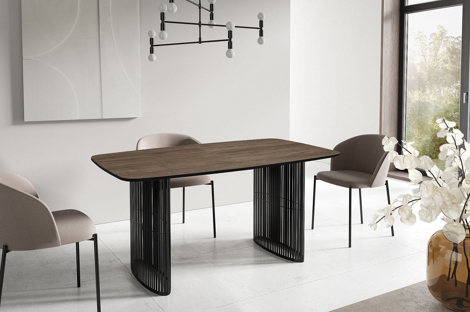 Table à Manger Rectangulaire Extensible à Lamelles Style Loft – 200 à 280 cm – Table avec Pieds en Métal Noir, Coins Arrondis pour 12-16 Personnes – Marron Noyer